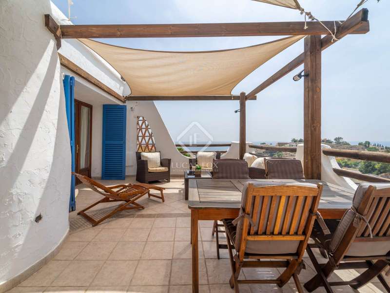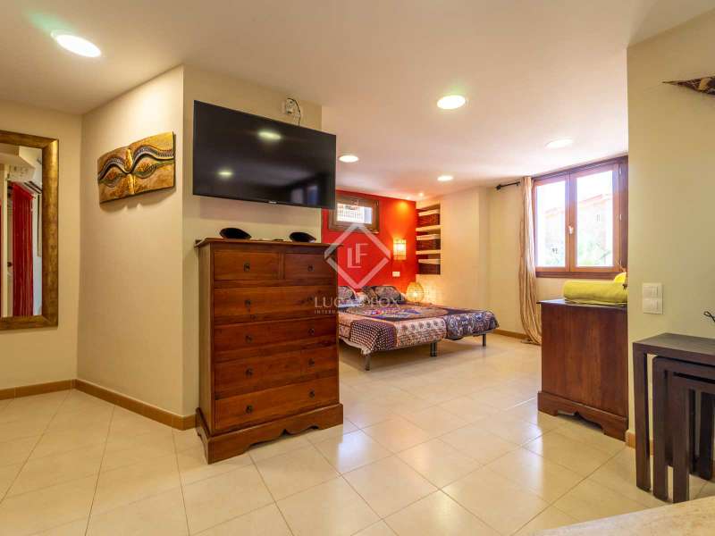 This unique property, with its distinctive architectural features such as substantial fifty-centimetre thick walls, a captivating cave with a dining area and fireplace, and two stunning swimming pools offering panoramic sea views, exudes a charm that is truly one-of-a-kind. The traditional blue Mallorcan shutters, elevated position, and seamless access to the outdoors on all three levels further enhance the property's appeal. What sets this residence apart is its dual functionality as both a private residence and a profitable business. With an established income stream, this property is not only a beautiful home but also a lucrative investment opportunity. Each level of the residence operates as an independent dwelling, offering expansive living and dining areas that lead to sea-view terraces, en-suite bedrooms, and fully-equipped kitchens. Additionally, the villa features two half baths and outdoor patios, ensuring comfort and functionality in every aspect of living. Furthermore, the villa is equipped with modern amenities including central hot/cold air conditioning, split air conditioning units in select bedrooms, ceiling fans, a centralized hot water system, and solar panels for hot water generation. For added security, the property is equipped with an alarm system, and for those seeking a touch of traditional charm, it features three fireplaces. Practicalities have not been overlooked either, with a two-car garage, a cistern, and a rainwater collection system for irrigation in place. The property's robust eighty-centimetre concrete slab foundation ensures minimal risk of settling and future cracks, providing peace of mind for discerning investors. Please get in touch with us to know more!