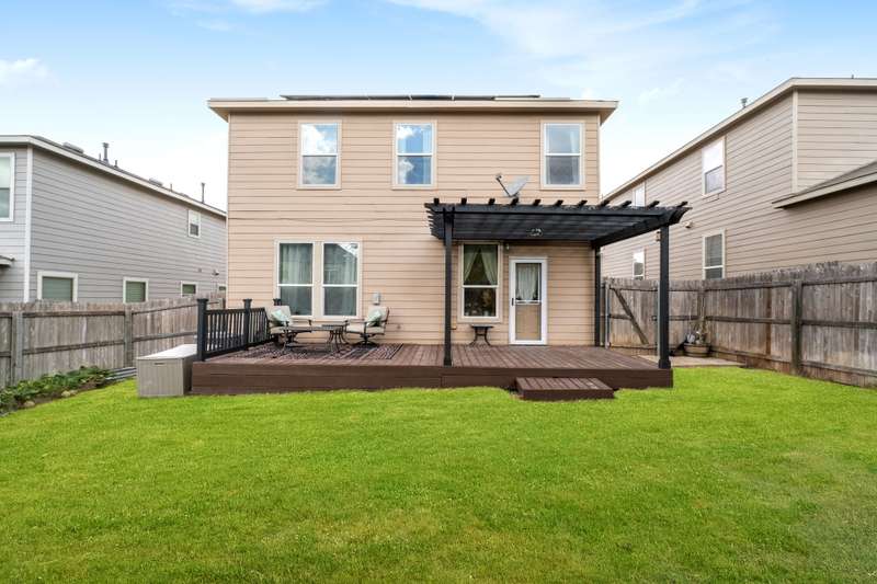 Welcome to this Far West Gem close to Lackland Air Force Base, Government Canyon State Park, great shopping, and convenient to downtown San Antonio. In addition to an assumable VA Loan at only 2.875%, and 28 fully functional solar panels that transfer at closing - this Beautiful 2-story home in the highly sought-after Texas Research Park neighborhood is a great fit for most lifestyles. A secondary bedroom and full bathroom downstairs create flexibility. Use it as a guest room, in-law suite, or perfectly situated office/flex room. The wood plank-style flooring, crown molding, granite countertops, and accent walls are upgrades that lend style to the partially open-floor plan. The two-tiered kitchen peninsula overlooking the dining area has space for bar stools - creating formal and informal dining options - while hiding your kitchen workspace from guests. Upstairs, a large primary suite with great closet space, two large secondary bedrooms, and a great loft area with many uses round out this versatile floor plan. The house lives larger than its 2000+SF but if that's not enough - relax on the shaded and freshly refreshed back patio overlooking the inviting backyard. They yard is just large enough to throw a ball but small enough for easy maintenance. This Neighborhood includes an awesome amenities center with a pool, picnic pavilion and playground and best of all your new home is part of the Northside Independent School District. Hurry this home will not last long! - 10/19/2025 3:15:18 AM