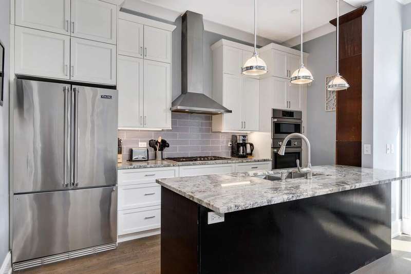 Welcome to this Spectacular Gold Coast rowhome! This meticulously renovated property boasts a sophisticated layout and tasteful decor, ensuring a truly luxurious living experience. The main floor is equipped with a guest bedroom and a full guest bath, perfect for accommodating visitors. The large family room on this level provides access to the fabulous yard, creating a seamless indoor-outdoor transition. On the second floor, find an open concept kitchen with ample counter space and premium grade appliances. The functional dining space seamlessly flows into the massive living room, providing the ideal setting for entertaining guests. The highlight of this level is the huge outdoor space, featuring engineered decking and offering direct access to the backyard. Enjoy the abundance of natural light and the beaming southern exposure in this kitchen. The top floor of this home features three bedrooms and two full bathrooms. The primary bathroom is a true oasis, boasting dual vanities, a private glass-enclosed shower, and a gorgeous free-standing tub. The bedrooms are adorned with walk-in closets and offer wonderful natural light, creating a serene and comfortable atmosphere. Designed with great flow and attention to detail, this property also offers ample storage throughout. Includes two deeded indoor garage spots at the building directly behind the home. Don't miss the opportunity to own this magnificent Gold Coast Rowhome, offering luxurious living, stunning outdoor spaces, and an unbeatable location. This is also a great development opportunity with the two neighboring properties at 109 and 111 W Elm.