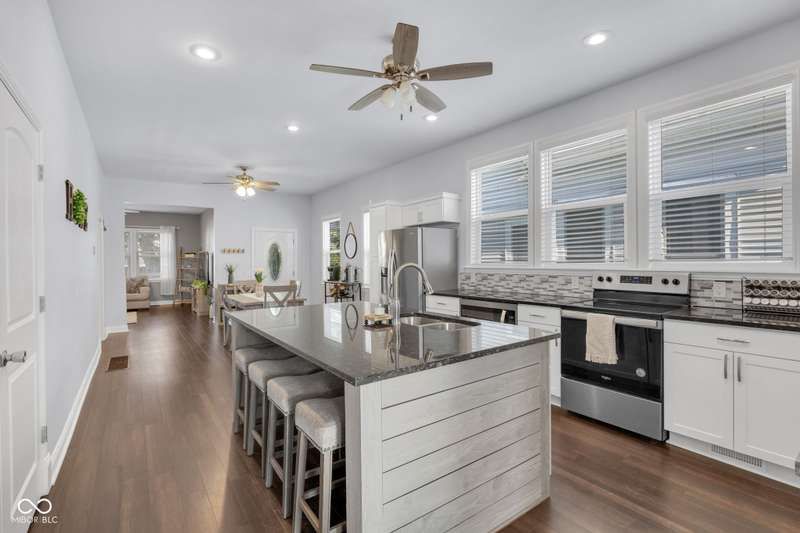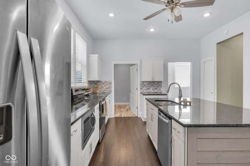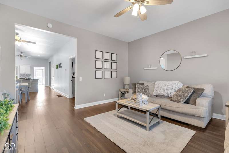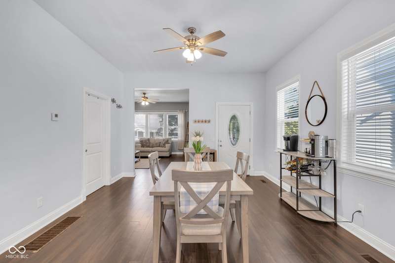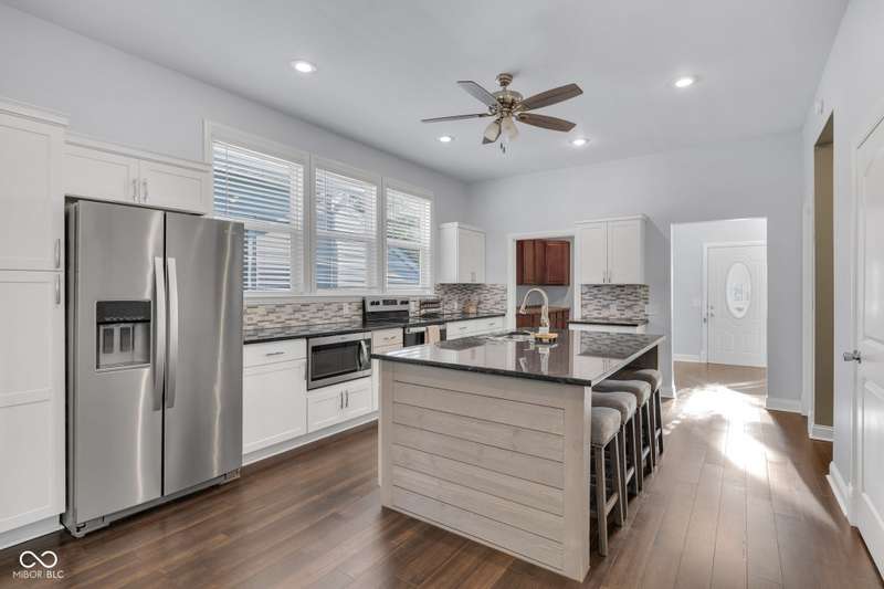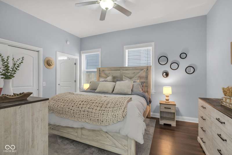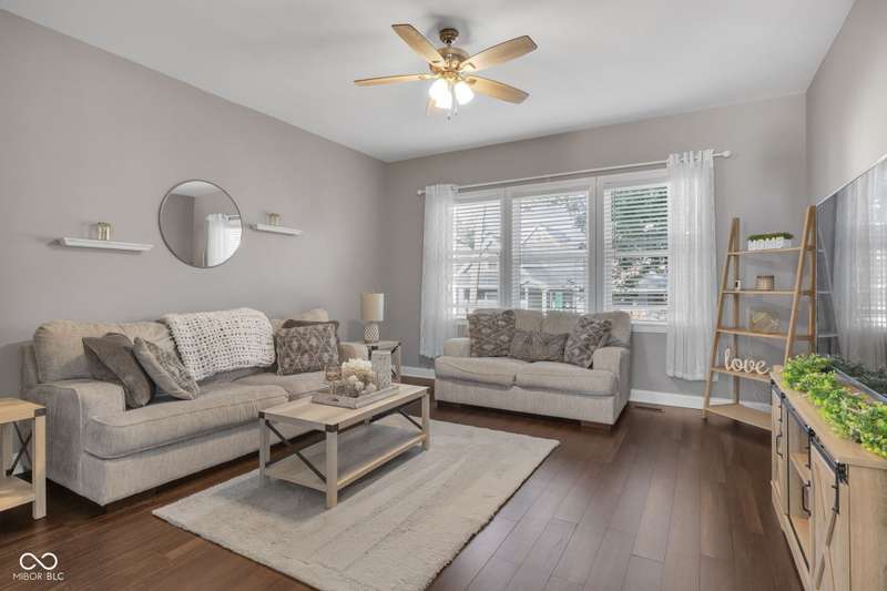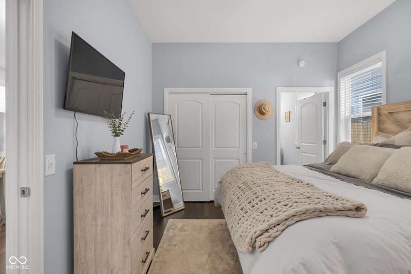 This fully turn-key 4 bedroom, 2.5 bath home is filled with natural light and soaring ceilings throughout. From the moment you walk in, the main floor's open-concept design creates an inviting flow. The spacious kitchen offers abundant counter space, a large eat-in island, and an impressive walk-in pantry. A versatile mudroom sits just off the expansive laundry room for added convenience. The main-level primary suite features a private ensuite bath! Upstairs, you'll find three additional bedrooms, a full bath, and a flexible loft-style living area perfect for a home office, gym! Outside, enjoy a fully fenced backyard-plenty of space for entertaining/kids/fur-babies! All this just steps from Lucas Oil, Bates-Hendricks, Fountain Square, Eli Lilly, and more-putting downtown living right at your fingertips!