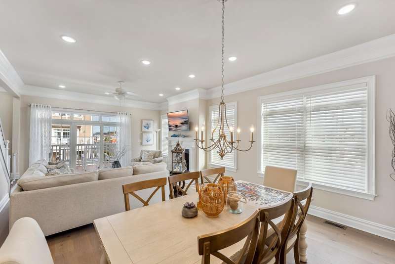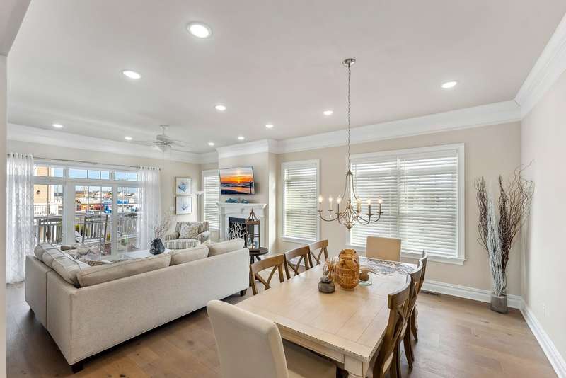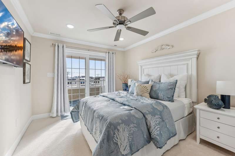 For those unwilling to compromise: 3,100 square feet of luxury with bay views, beach views, a private 12 x 22 pool and a slip for your boat or jet skis, welcome to The Bay View Breeze. This stunning townhome has 4 bedrooms - all 4 of them en suite - 4 full baths, 2 half baths and 5 decks. Enjoy breath taking views of Beach Creek from the 2 massive wrap-around decks on the first and second floor, and from most interior windows of this home. The crashing waves of the Hereford Inlet can be enjoyed from 2 of the private decks off of the bedrooms. Ready to host a pool party? The first floor features a great recreation room opening to the deck and pool below. Your guests will love the heated pool with evening lights, beautiful travertine tile, and a convenient added first floor half bath just inside the door. Take the elevator to the second floor to see the gourmet kitchen with state-of-the-art appliances and granite counters encircling the oversized island with eating space for four. Enjoy the sunset views from the kitchen island or step out of the sliders to the wrap-around deck with grilling station and a table set for 6. You'll stay connected to your guests with an open, airy dining area with room for six, a half bath, and a spacious living room and another set of sliders leading out to the deck over-looking the pool. The second floor also has a junior master suite, The Starfish room, which has a queen bed, bathroom with custom tile, and private deck. Take the elevator up to the third floor for 3 more bedrooms, 3 bathrooms and the laundry room. The Happy Room has 2 full beds and a private bath, the Bay View Room is the master suite with a king-sized bed, huge walk-in closet, private deck, bathroom with dual sinks, amazing soaker tub, white bead board and upgraded Italian tile in the shower. The Sea View room has a queen bed, private bath and private deck facing north. Other amenities include: 41-foot garage with 13-foot ceilings, one of the largest yards in the development for extra entertaining space, dual zoned heating and air, tankless hot water heater, outdoor shower, and a boat slip at the private dock. This luxury is just steps away from the travertine walkway that leads to the dock and private marina. Enjoy all that North Wildwood has to offer, with bars restaurants, and beaches just 3 blocks away, and the picturesque seawall is just 2 blocks away. Home comes fully furnished minus personals. Exclusions: all baby furniture, desk on first floor, golf cart, kayaks, rocking chair in bedroom, some kitchen items in the cabinets.