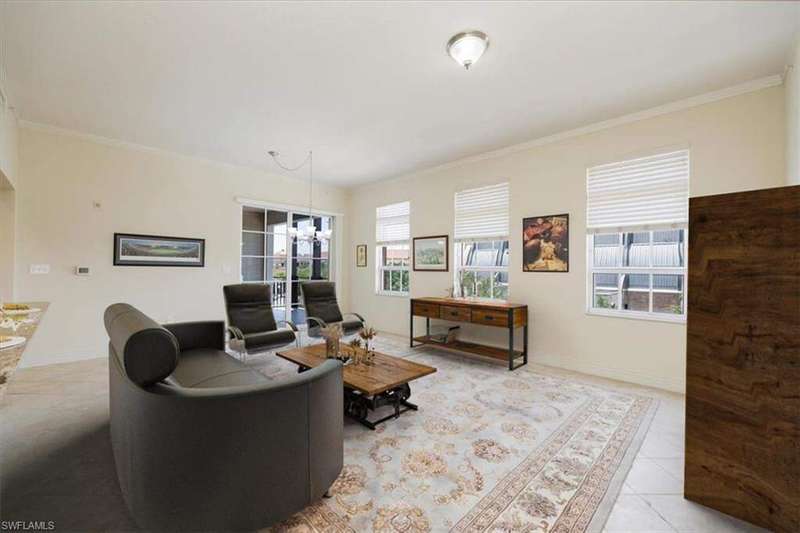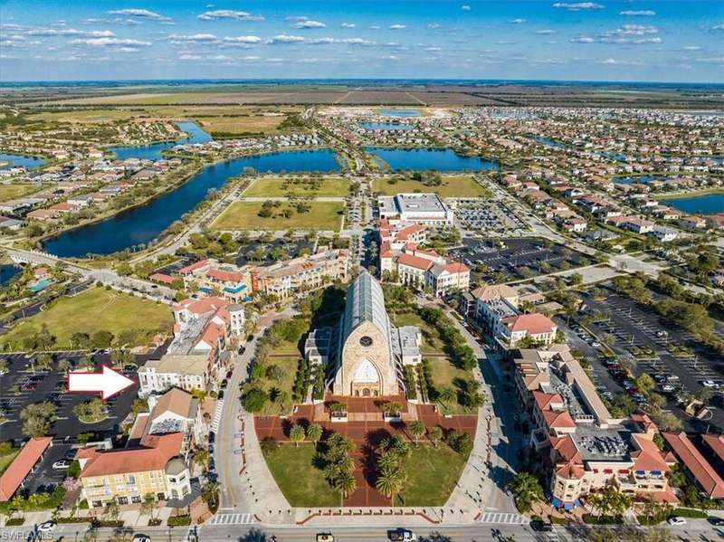 Welcome to The Residences at La Piazza in Ave Maria, an exclusive community of just 70 luxury condos - all within walking distance of town. This 3-bedroom+den, 3-bathroom condo offers a private balcony with beautiful views of the town center. Inside you will find luxury living with an eat in kitchen, great room, nicely finished bathrooms, French doors to the owner's suite. The condo with updated appliances and AC unit offers high-end finishes like crown molding, granite countertops, plantation shutters, and impact-resistant windows. Building 5 has covered 'garage like' parking spaces - highly valued by owners The condos at La Piazza feature a private community pool, a nearby fitness center, and secure parking. Experience year around town events, University sports and cultural events, a full library, dining, shopping, academic lectures, golf and much, much more. And finally, drive to Naples' beaches within an hour's driving time.