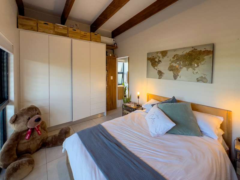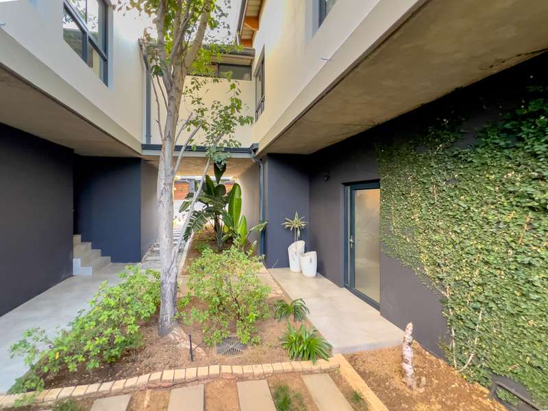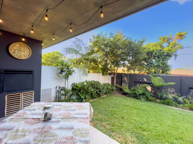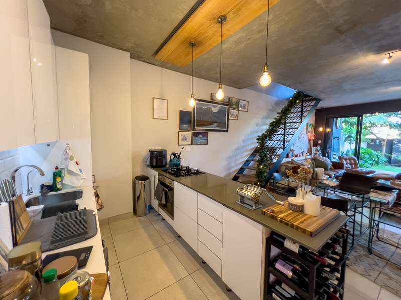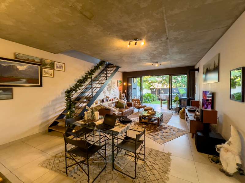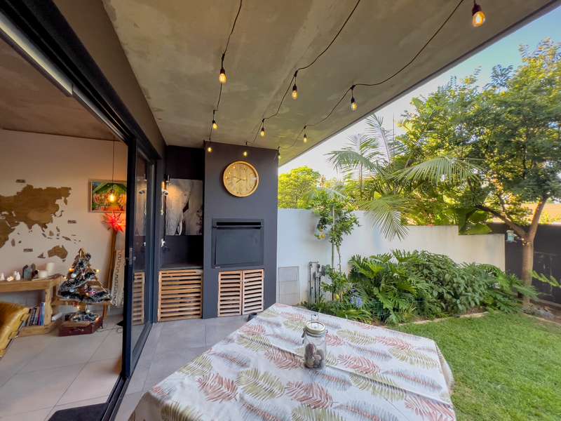 Exclusively to RealNet Properties This stunning 2-bedroom property is the perfect blend of luxury, style, and functionality, featuring contemporary architecture and premium finishes throughout. Both bedrooms include en-suite bathrooms, ensuring privacy and convenience, while a downstairs guest toilet adds practicality. The open-plan living area is designed for modern living and entertaining, with tasteful finishes, exposed concrete ceilings, and a cozy fireplace. Wall-to-ceiling glass doors flood the space with natural light and open onto a patio equipped with a built-in braai and a low-maintenance irrigated garden. The sleek kitchen is a chef's dream, featuring a gas stove, built-in fridge, and dishwasher, all seamlessly integrated behind fitted cupboard doors. Caesarstone countertops add a touch of elegance to the space. A single automated garage offers direct access to the home, complemented by a dedicated parking space in front and ample guest parking. An inverter system provides reliable backup power for up to two days, ensuring uninterrupted comfort. Security and maintenance are top priorities, with a night guard on duty and a dedicated gardener keeping the complex's gardens and lawns in pristine condition. If you’re looking for a modern home that offers luxurious living and practical features, this property is the ideal choice.