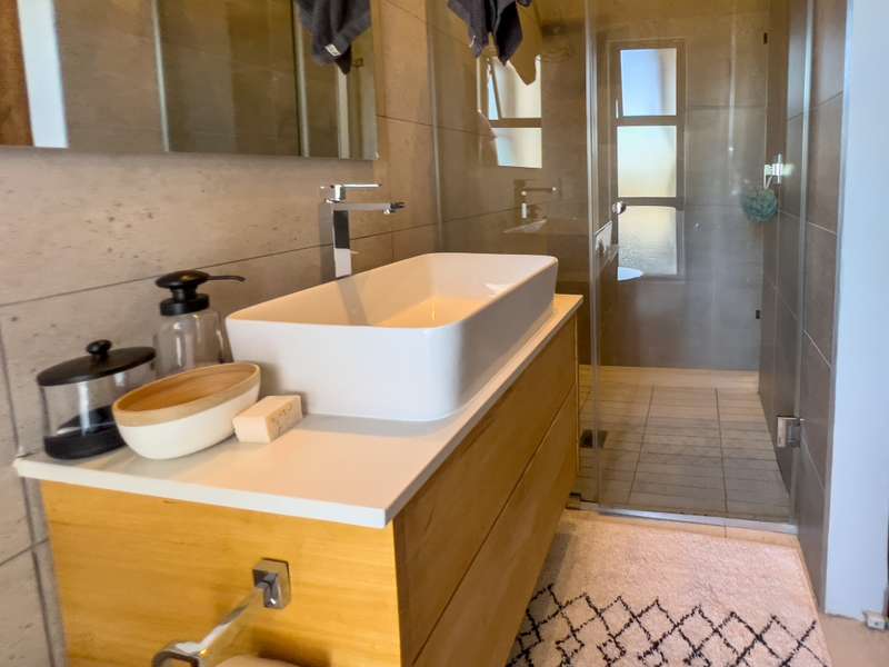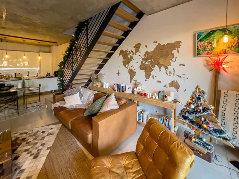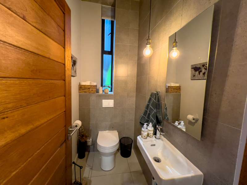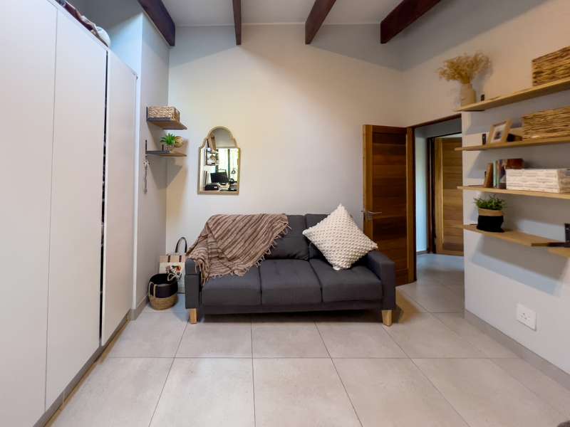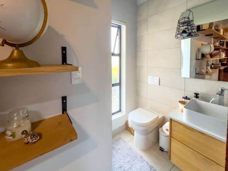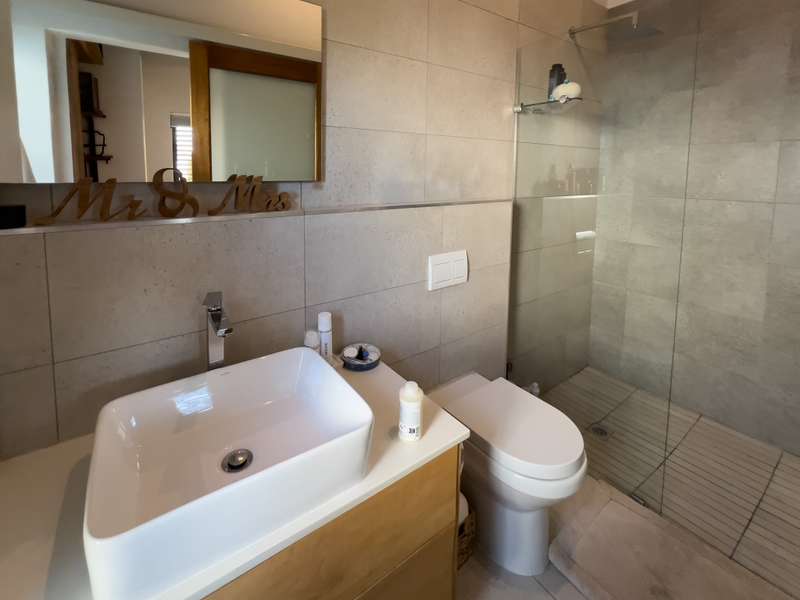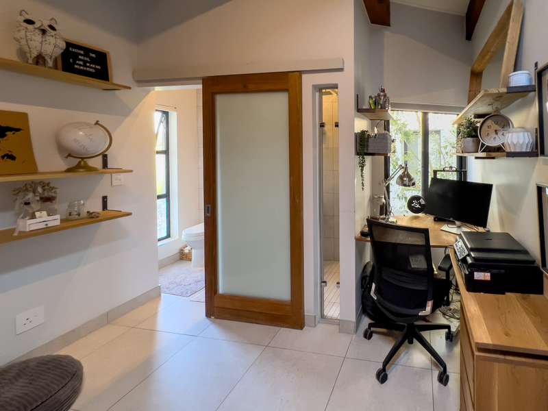 Exclusively to RealNet Properties This stunning 2-bedroom property is the perfect blend of luxury, style, and functionality, featuring contemporary architecture and premium finishes throughout. Both bedrooms include en-suite bathrooms, ensuring privacy and convenience, while a downstairs guest toilet adds practicality. The open-plan living area is designed for modern living and entertaining, with tasteful finishes, exposed concrete ceilings, and a cozy fireplace. Wall-to-ceiling glass doors flood the space with natural light and open onto a patio equipped with a built-in braai and a low-maintenance irrigated garden. The sleek kitchen is a chef's dream, featuring a gas stove, built-in fridge, and dishwasher, all seamlessly integrated behind fitted cupboard doors. Caesarstone countertops add a touch of elegance to the space. A single automated garage offers direct access to the home, complemented by a dedicated parking space in front and ample guest parking. An inverter system provides reliable backup power for up to two days, ensuring uninterrupted comfort. Security and maintenance are top priorities, with a night guard on duty and a dedicated gardener keeping the complex's gardens and lawns in pristine condition. If you’re looking for a modern home that offers luxurious living and practical features, this property is the ideal choice.