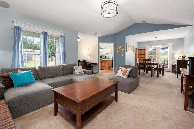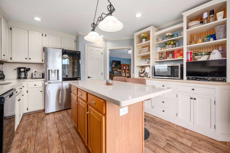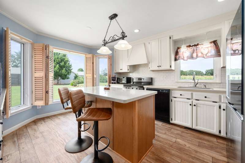 Reduced! Tranquil Retreat on Over Two Acres?No HOA! Full brick home with detached 3 car garage. Enjoy the peace and privacy of a cozy, one-street community nestled on flat, open land?while still being in close proximity to shopping, dining, and other amenities. Quiet cul-de-sac location. Inviting wrap-around front porch. Step inside to the open great room flowing effortlessly into the dining area, enjoy the cozy gas fp and flex workspace. Updated French Country-style kit, quartz center island w/seating, gas stove, built-in wall shelving unit & bay window. Spacious primary br w/walk-in closet and large ba. Secondary br w/built-in shelving. Enjoy outdoor living on the large, low-maintenance composite deck overlooking the pvt tree lined yard which features an impressive mature pecan tree bursting with nuts! Expansive all brick 3 car det gar fully equipped w/ electricity and heating unit; endless potential for hobbies, a workshop, and/or add'l storage. This home is the perfect blend of rural tranquility and modern amenities. Check it out!