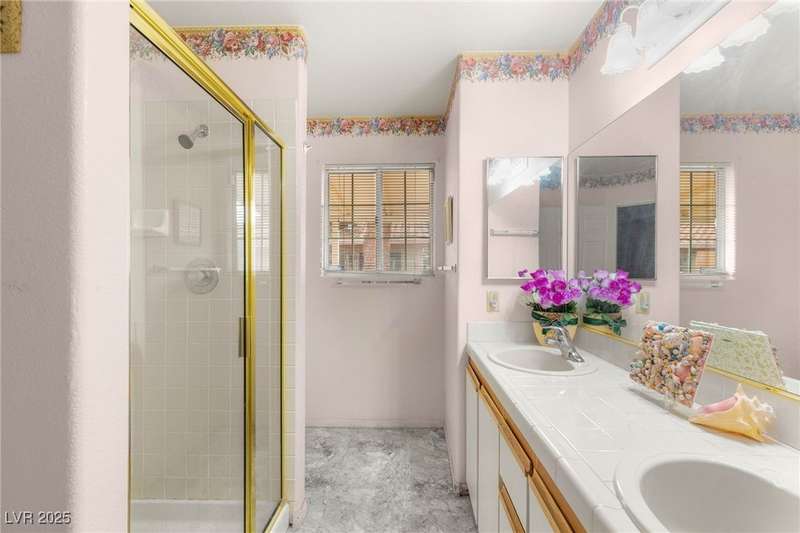 Welcome to this charming 2-bedroom, 2-bath condo, perfectly situated in a quiet, well-maintained Las Vegas community. This ground-floor unit offers an inviting open layout with a bright living and dining area, a spacious kitchen with plenty of storage, and a private covered patio ideal for relaxing outdoors. The primary suite includes an en-suite bathroom and generous closet space, while the secondary bedroom works perfectly as a guest room, office, or flex space. With fresh natural light throughout, this condo is designed for comfort and convenience. Residents enjoy access to resort-style amenities including a sparkling pool, spa, and clubhouse, surrounded by lush landscaping that creates a peaceful atmosphere. Centrally located, this home offers quick access to shopping, dining, schools, parks, and the Las Vegas Strip, along with nearby freeway connections for an easy commute. A wonderful option for first-time buyers, downsizers, or investors.