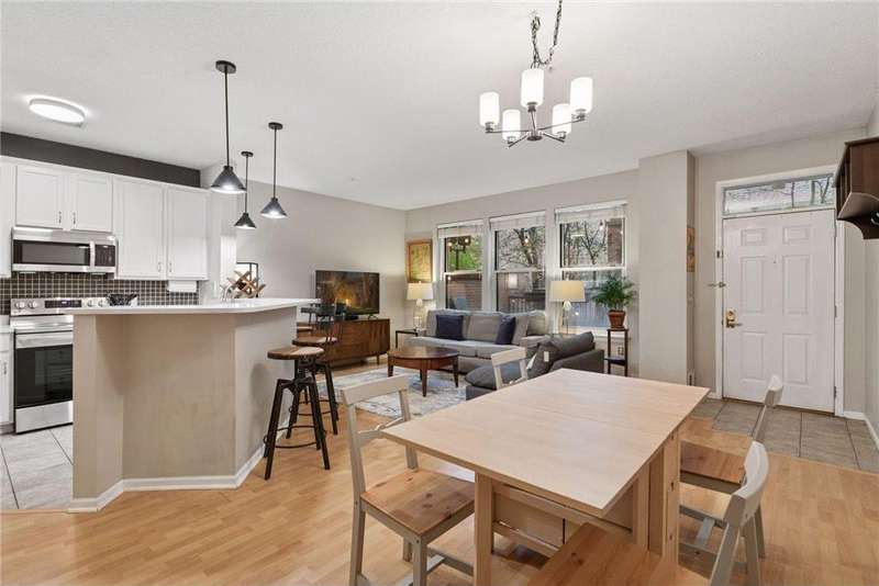 Modern comfort meets unbeatable location in this updated 2-bed, 2-bath two-story condo. The kitchen was refreshed in 2025 with LG stainless steel appliances, quartz countertops, and updated lighting. The full bath has a 2022 Onyx bathroom upgrade with a lifetime guarantee. New furnace in 2023. This main-level condo makes pet ownership easy with a private patio and exterior entrance. Additional features include spacious closets, two storage lockers, and dedicated underground parking. Convenient location with onsite management, ample guest parking, and proximity to Target Field, the North Loop, Whole Foods, and major highways.