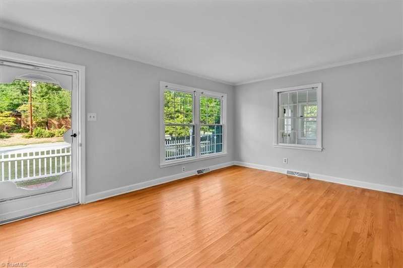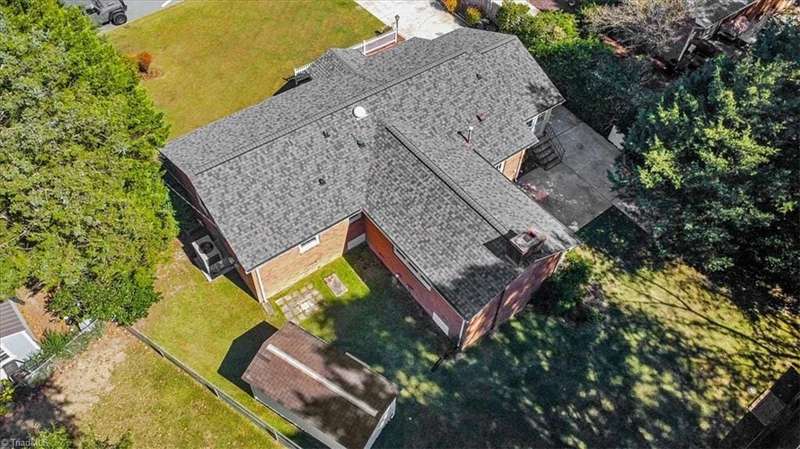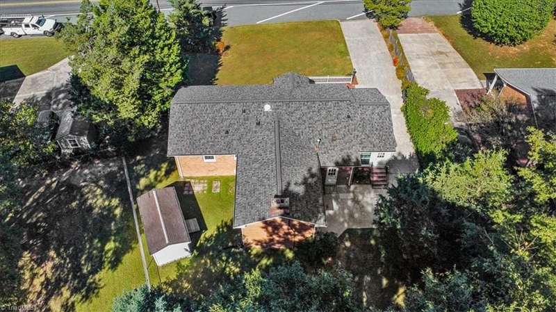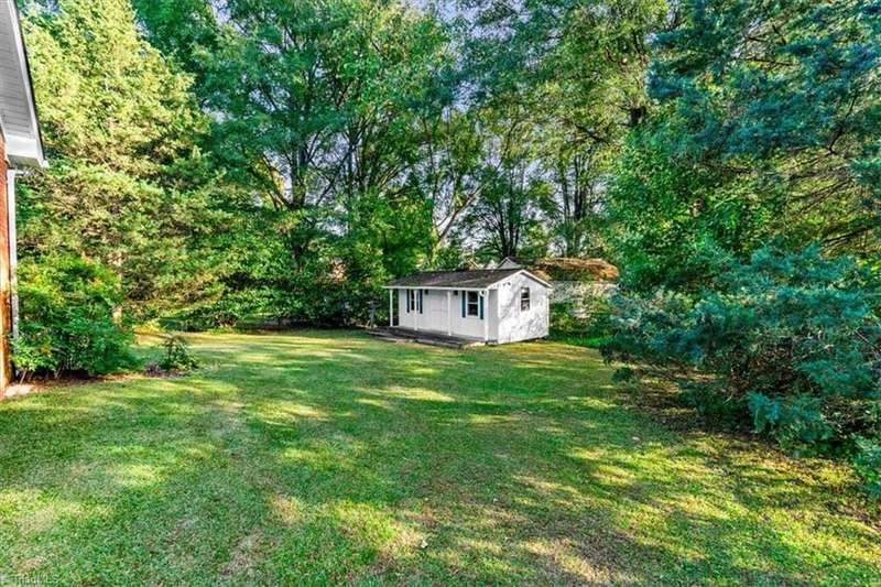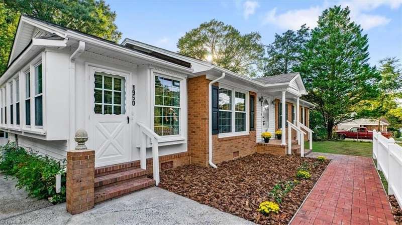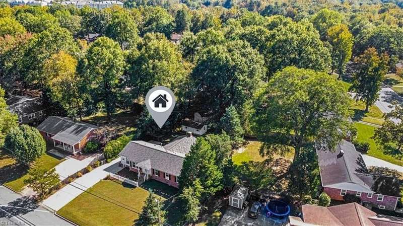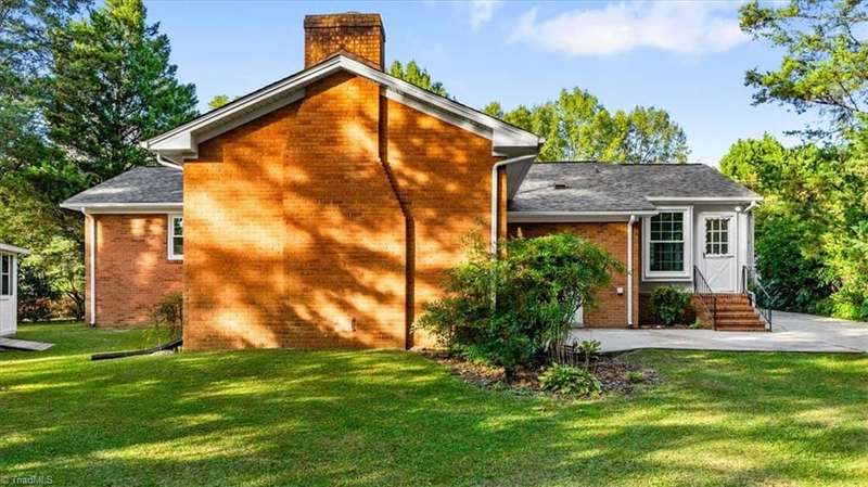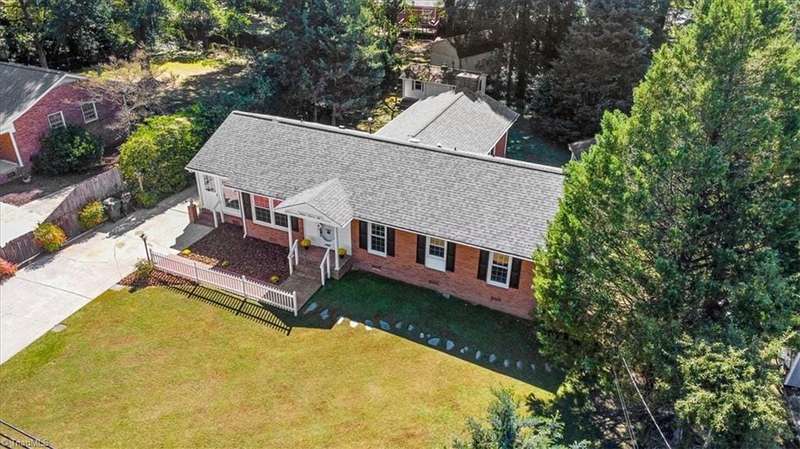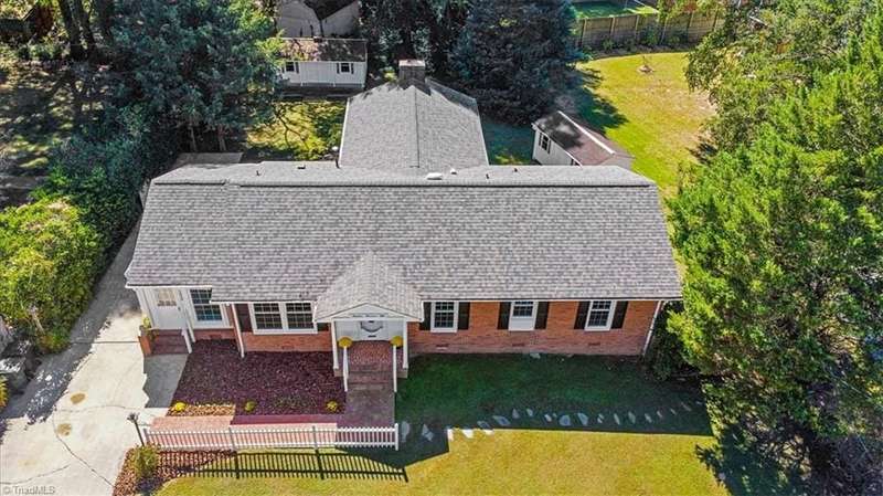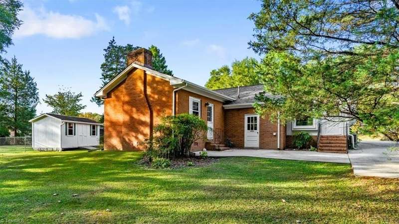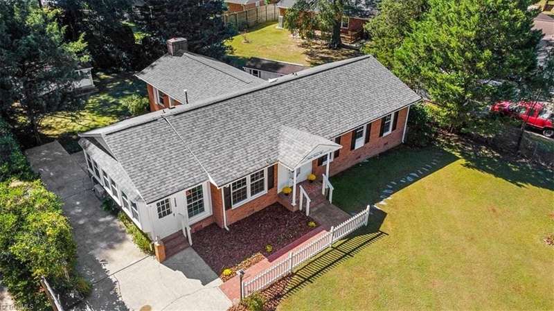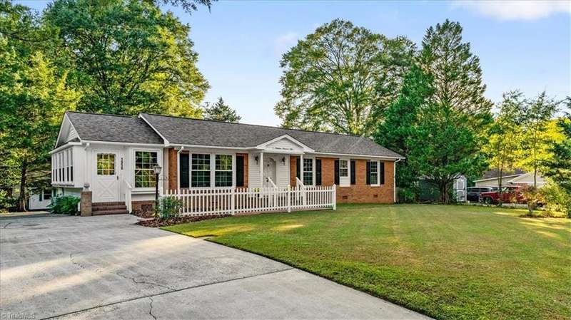 Fantastic brick ranch with an attractive refresh in one of Burlington's best areas! This home features THREE LIVING AREAS! Formal living room with original hardwoods, kitchen open to dining room. Kitchen features new appliances, flooring and counters. Sunroom with new flooring has a separate heat pump. The gorgeous den, located on the back of the house for privacy, is very large and boasts built-ins. New paint through most of home. Roof replaced summer 2025! Great, level backyard with an oversized, wired storage building. Replacement windows. Home was pre-inspected for peace of mind. Move-in ready!