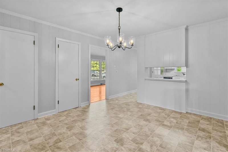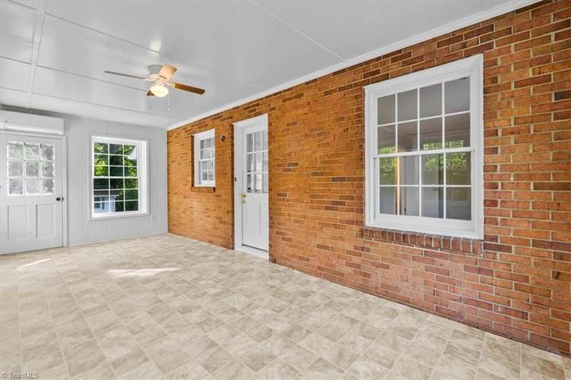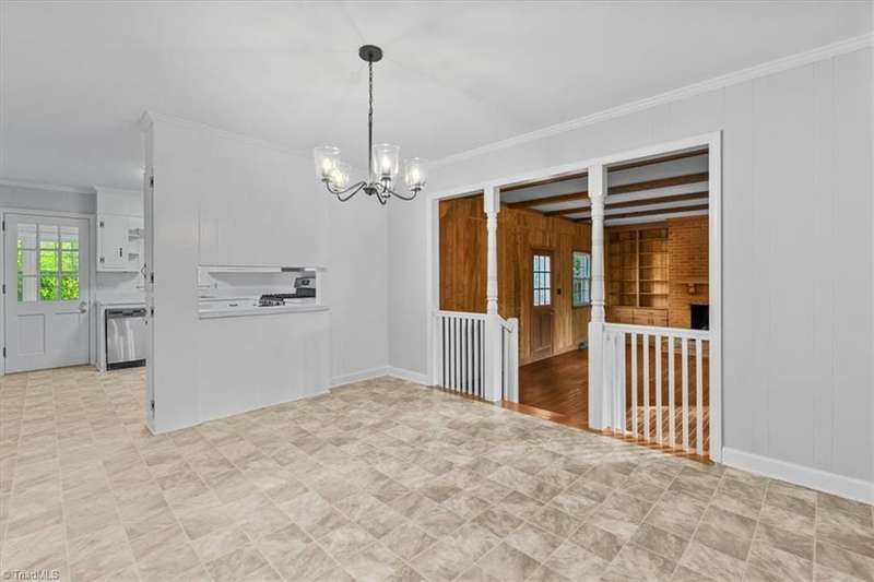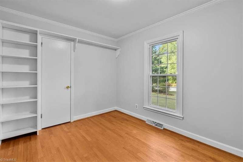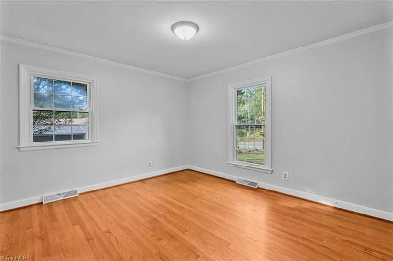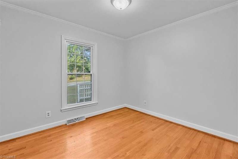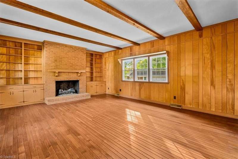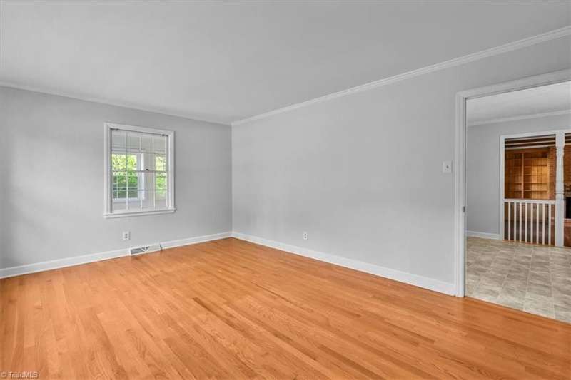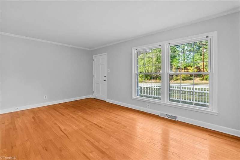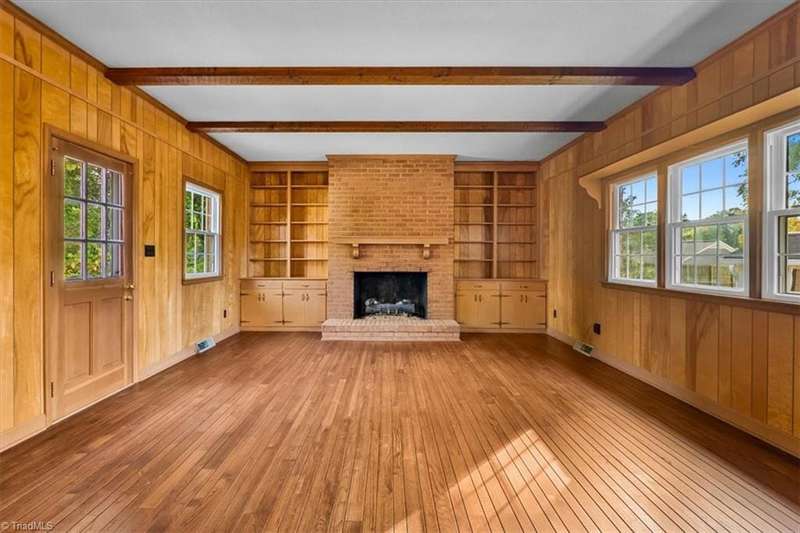 Fantastic brick ranch with an attractive refresh in one of Burlington's best areas! This home features THREE LIVING AREAS! Formal living room with original hardwoods, kitchen open to dining room. Kitchen features new appliances, flooring and counters. Sunroom with new flooring has a separate heat pump. The gorgeous den, located on the back of the house for privacy, is very large and boasts built-ins. New paint through most of home. Roof replaced summer 2025! Great, level backyard with an oversized, wired storage building. Replacement windows. Home was pre-inspected for peace of mind. Move-in ready!
