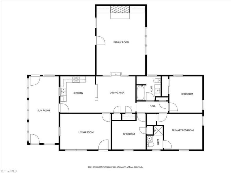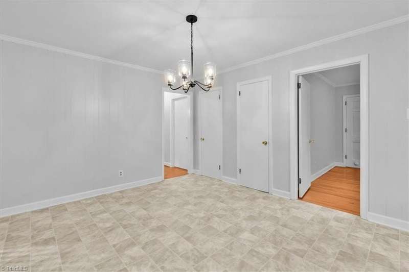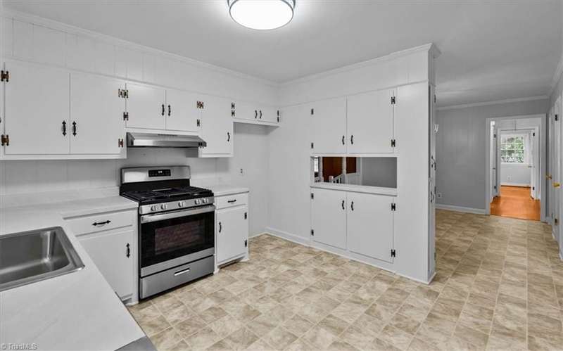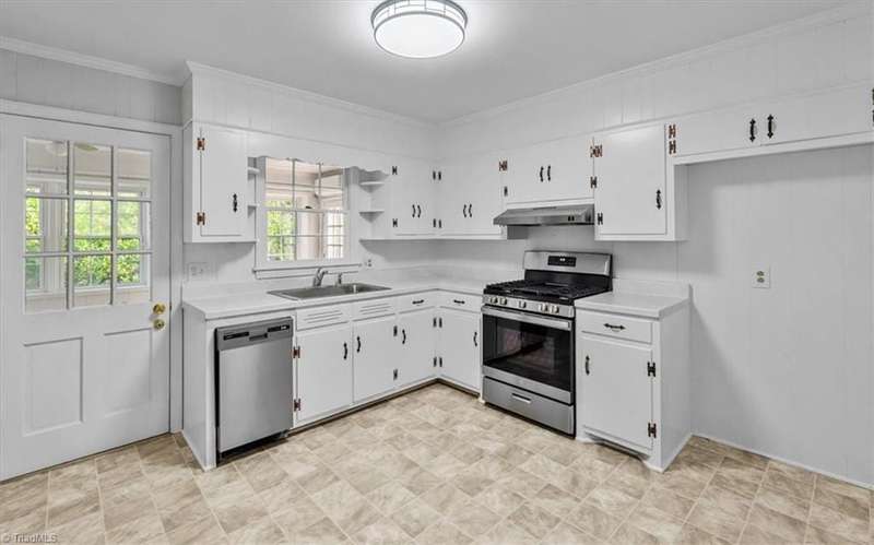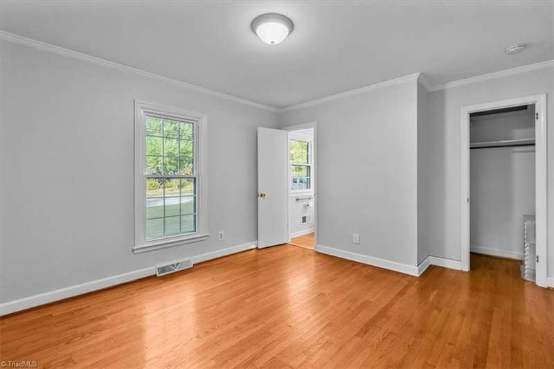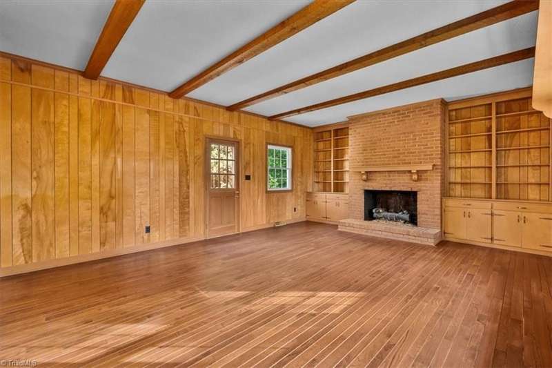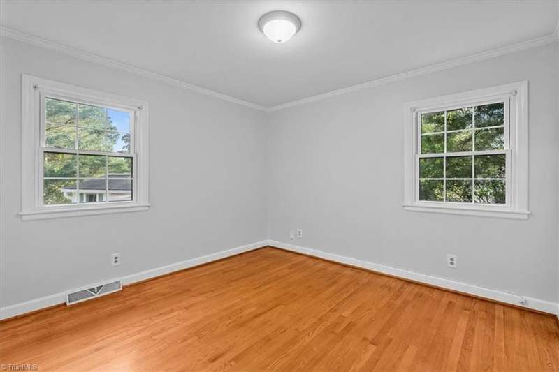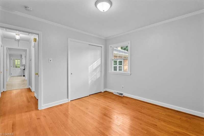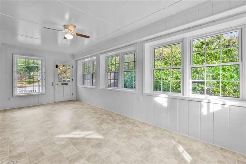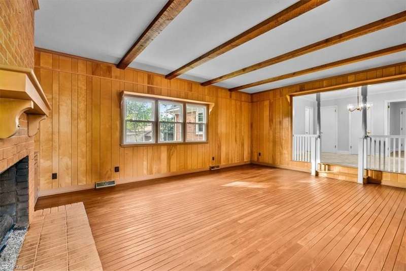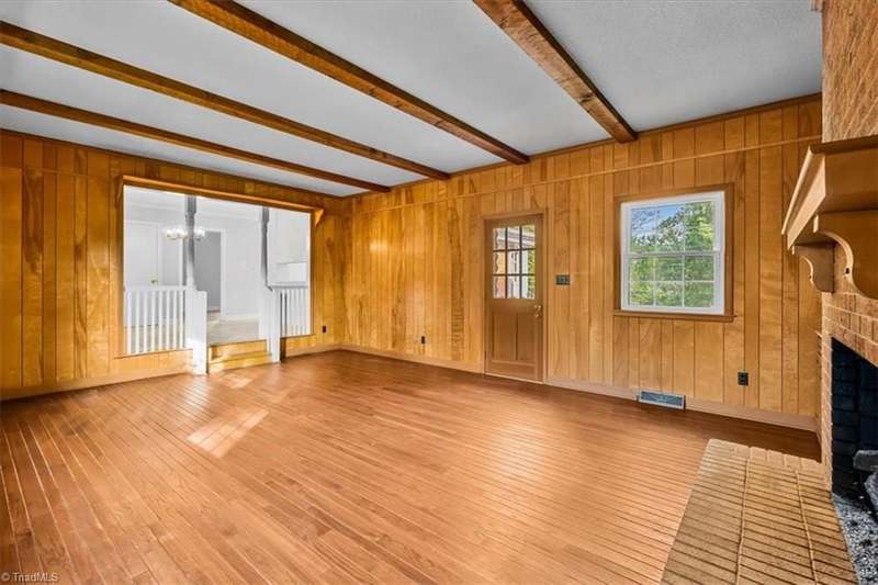 Fantastic brick ranch with an attractive refresh in one of Burlington's best areas! This home features THREE LIVING AREAS! Formal living room with original hardwoods, kitchen open to dining room. Kitchen features new appliances, flooring and counters. Sunroom with new flooring has a separate heat pump. The gorgeous den, located on the back of the house for privacy, is very large and boasts built-ins. New paint through most of home. Roof replaced summer 2025! Great, level backyard with an oversized, wired storage building. Replacement windows. Home was pre-inspected for peace of mind. Move-in ready!