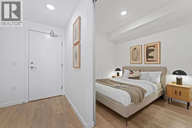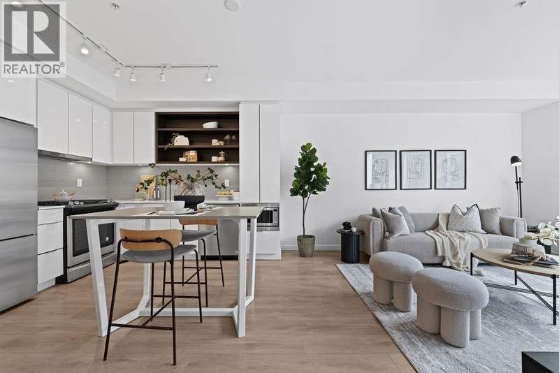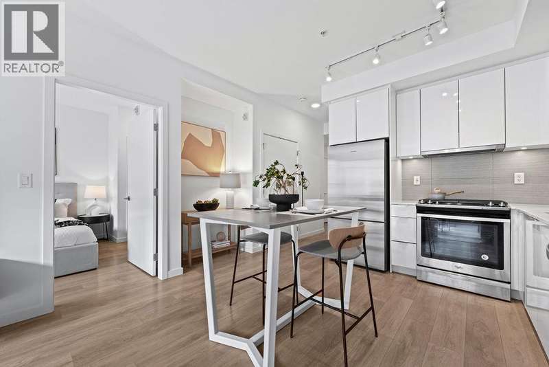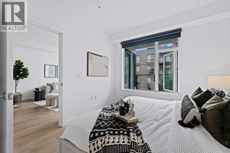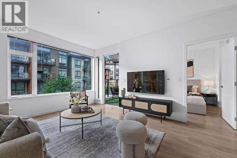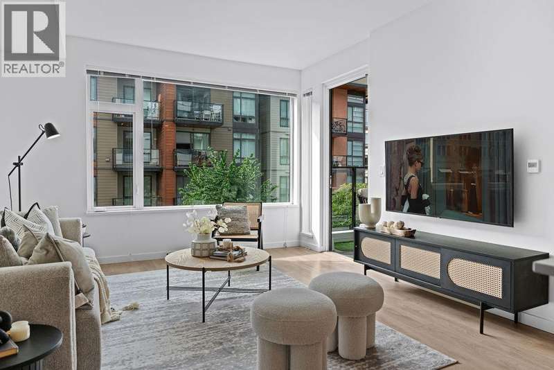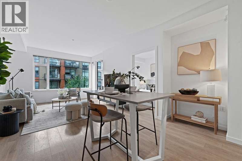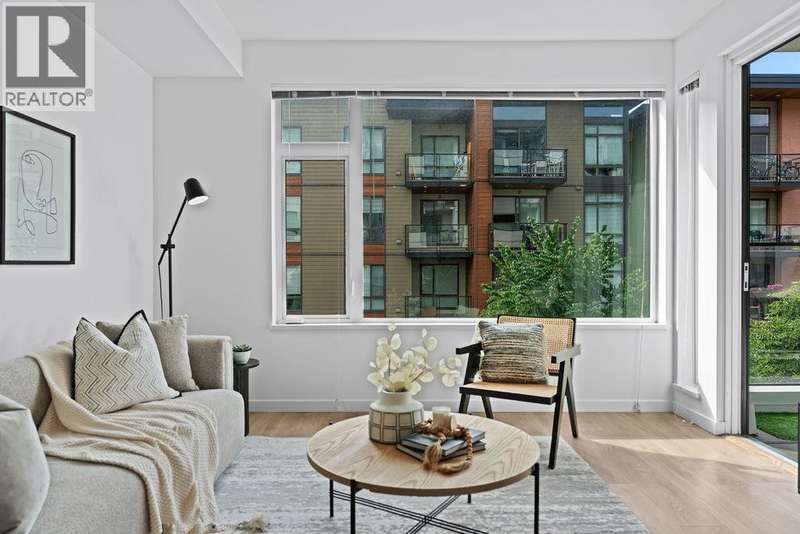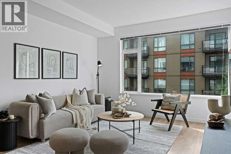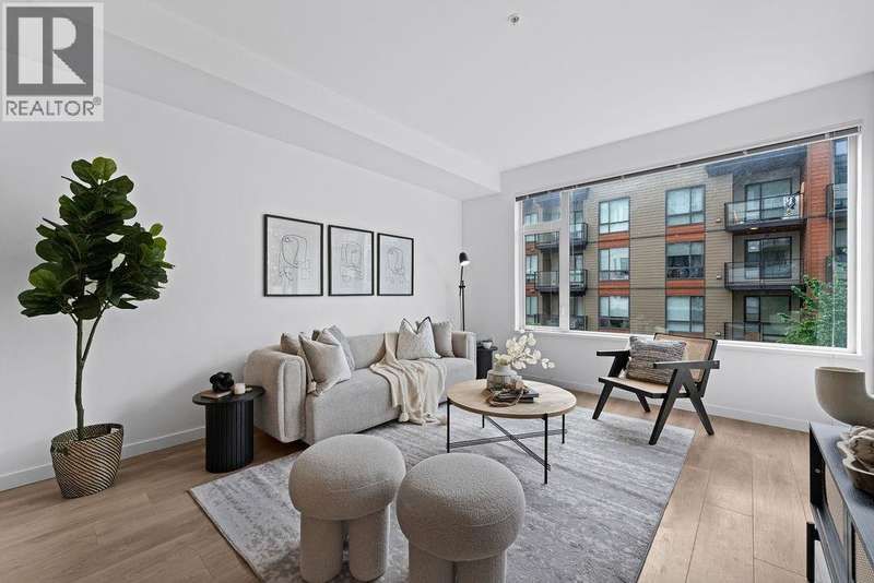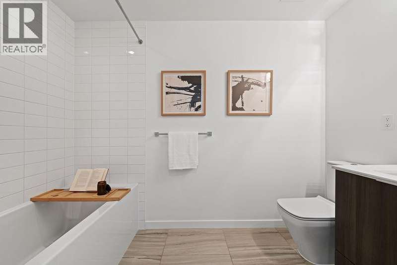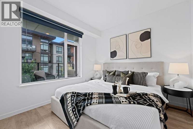 Welcome to Marine + Fell - a contemporary 2-bedroom, 2-bathroom condo with impressive nine-foot ceilings, perfectly positioned on the quiet, south-facing side of the building. Right outside your door, Mosquito Creek offers the perfect escape into nature, while shopping, restaurants, cafes, and breweries are just steps away for everyday convenience. Bright and well-designed, this home includes one parking stall, two storage lockers (one oversized), and comes with a rare bonus of two complimentary 1-year F45 memberships, located right beneath you! (id:58403)