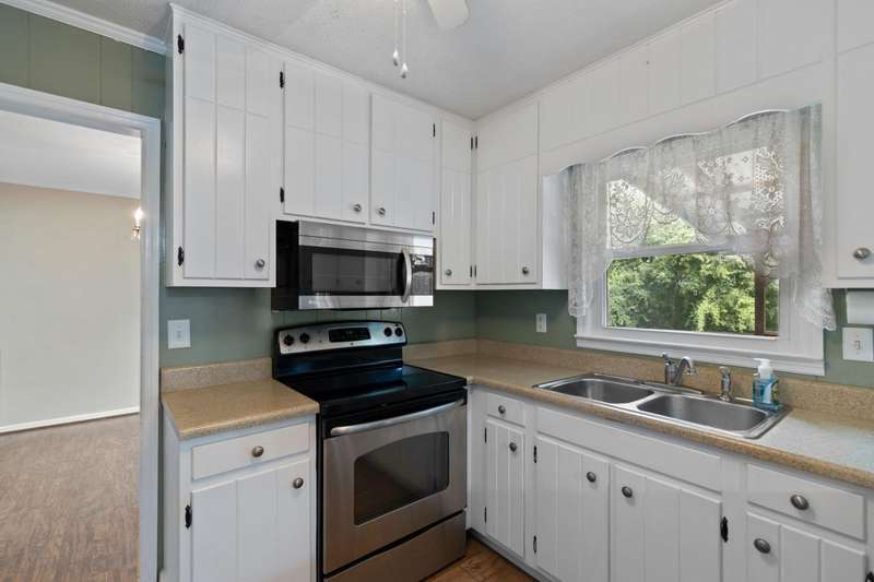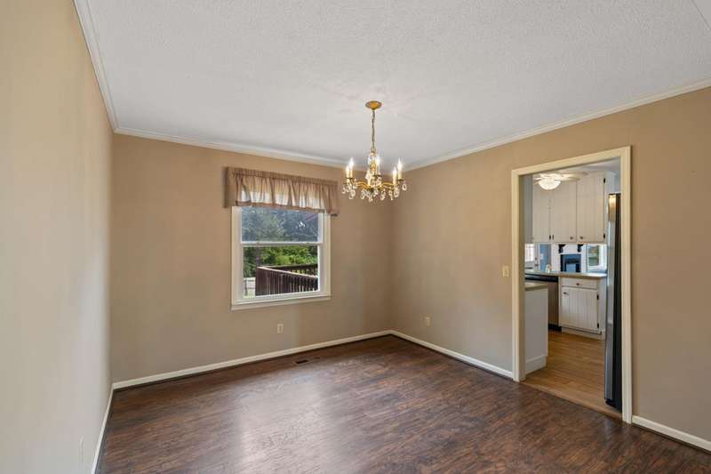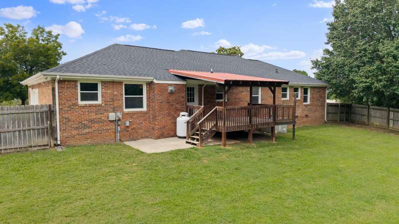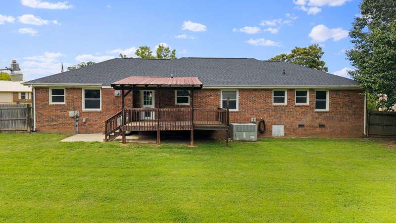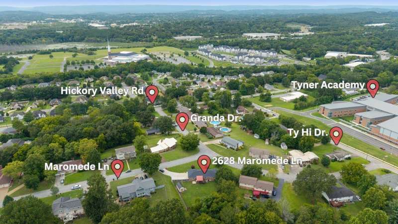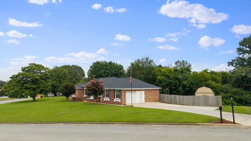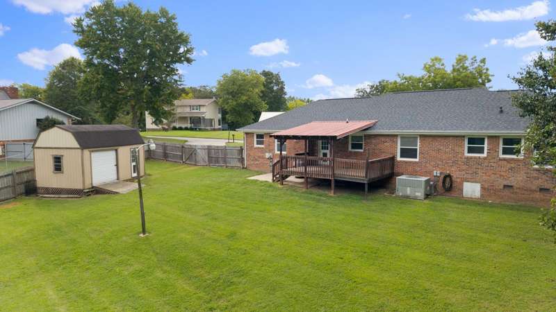 Beautiful 3 bedroom, 2 bath, ranch-style home, sitting on a half acre, corner lot, in an established neighborhood! Step inside to a beautiful family room with a bay window that has a semi view of Signal Mountain in the distance. The kitchen has plenty of cabinet space, a bar, and a separate dining room perfect for entertaining. The adjacent den welcomes guests with a cozy fireplace for those chilly days and nights. The hallway bathroom offers a double vanity with separate tub/shower combo, while the main suite features large closets and a bathroom with sink and enclosed glass shower.Enjoy added convenience with a laundry room that includes built-in cabinets for pantry or storage use. Outside, relax on the covered deck overlooking a spacious backyard with an outbuilding that conveys. Plus, a parking garage for a small vehicle, completes this move-in ready home. Surrounded by major shopping centers, entertainment, and corporations, including Volkswagen Chattanooga, Coca-Cola Bottling, McKee Foods, Unum, BlueCross BlueShield, Erlanger Health System, and more???