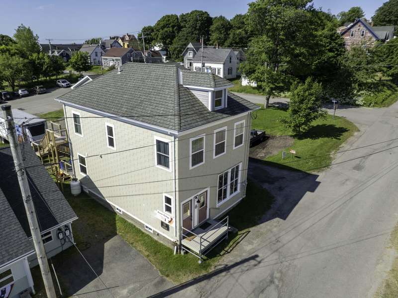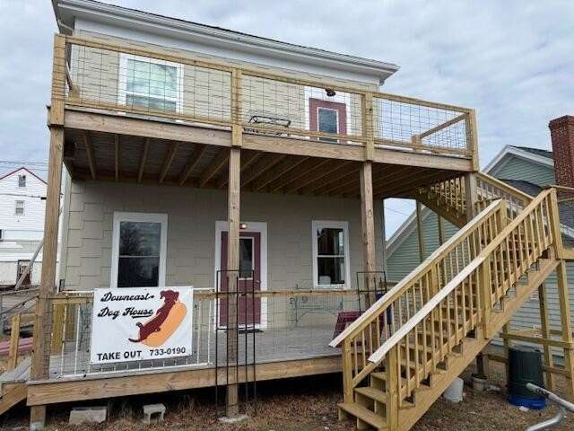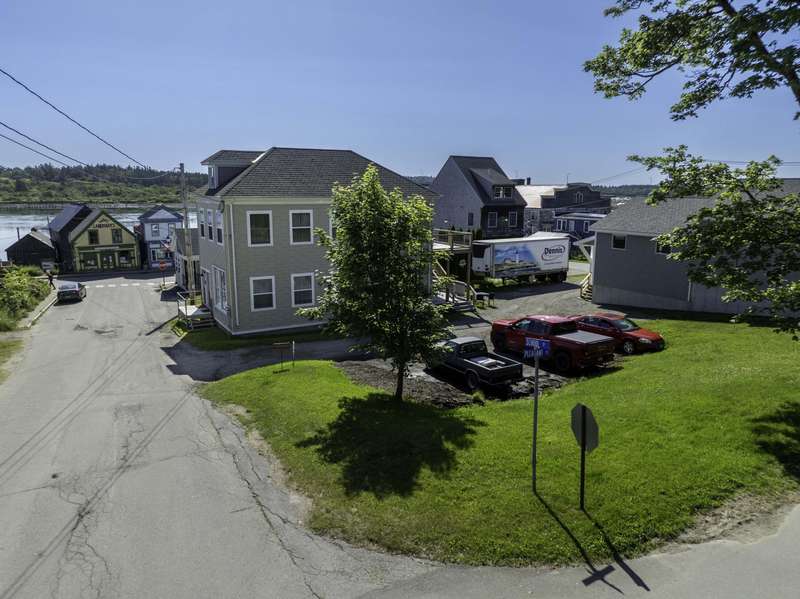 Experience breathtaking panoramic views of the Lubec Narrows, the international bridge to Canada, Campobello Island, and Grand Manan Island from this fully renovated multi-use building in the heart of Lubec. Just steps from shops, restaurants, and local attractions, this prime property offers modern amenities and versatile spaces. The second-floor offers a stunning two-bedroom, year-round apartment that boasts a light-filled eat-in kitchen with a cozy daybed nook, a spacious living room centered around a propane stove, and a large, elegant bath with a walk-in shower and washer/dryer. There are two southeast-facing 23' x 10' decks on each floor that provide additional outdoor living and eating spaces. The first-floor features nearly 1,000 square feet of commercial space, currently home to the Hunt & Gather boutique, a studio for LAMPS (a local music non-profit), and a fully licensed kitchen at Downeast Dog House, offering take-away lunches with a deck for outdoor dining and ample off-street parking. Located within walking distance of the library, shops, restaurants, a brewery, and a seasonal farmers' market, the property is also just minutes from iconic destinations such as West Quoddy Head Lighthouse, Roosevelt International Park, Mowry Beach Preserve, and scenic hiking trails. Additional conveniences include a two-car EV charging station next door, a hardware store a block away, and a public saltwater boat launch just two blocks away. With extensive renovations, newly insulated, updated heating systems including hot water on-demand, and low-flush toilets, this exceptional property offers a rare opportunity to live, work, and invest in Maine's picturesque easternmost town. Listed commercially as well at MLS # 1614875.