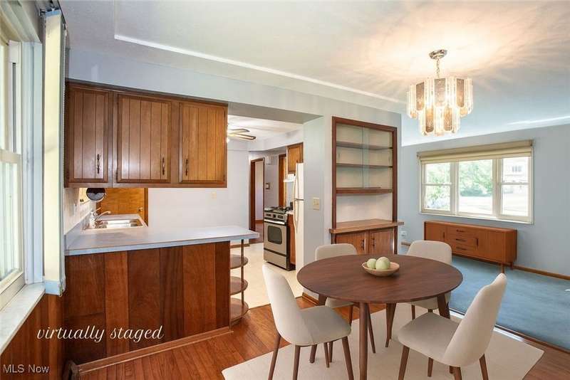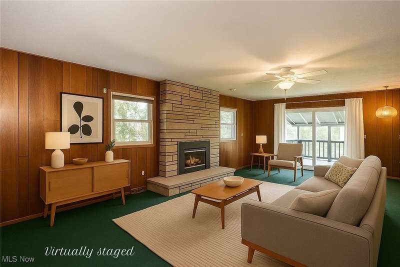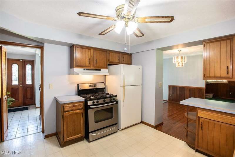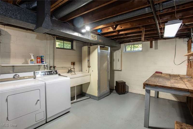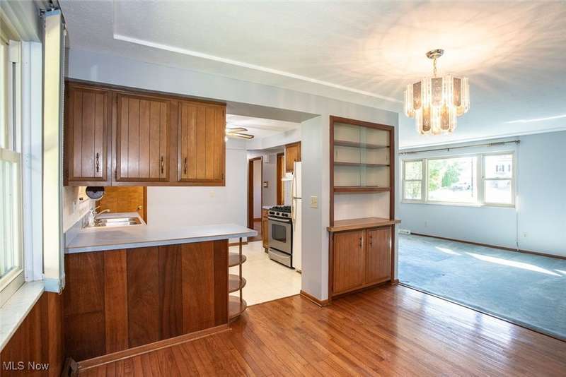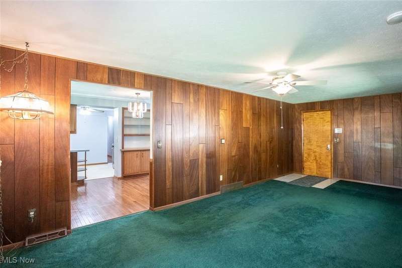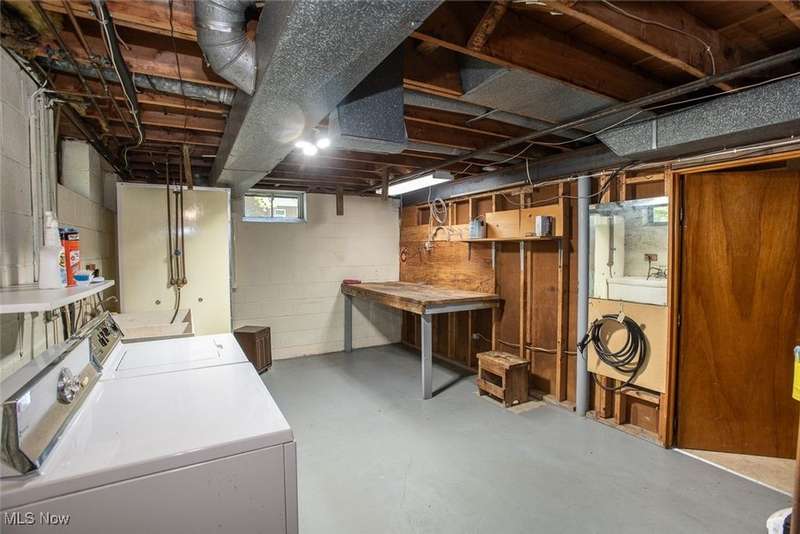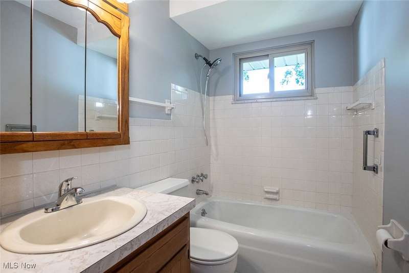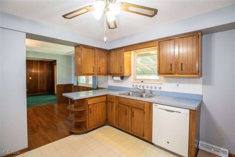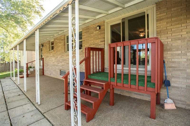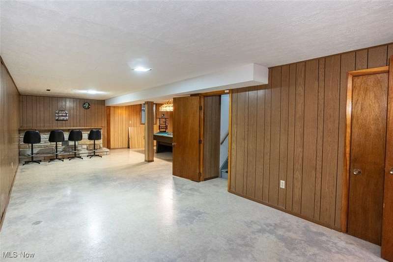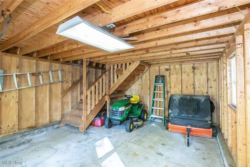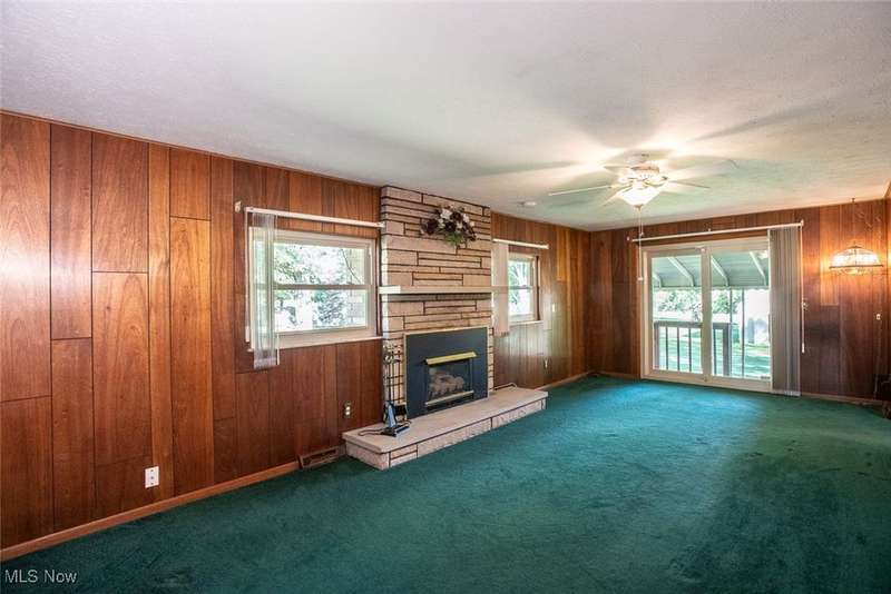 Welcome to this inviting all-brick ranch, perfectly set on a level 0.84-acre lot that blends comfort, charm, and versatility. Inside, you'll find 3 bedrooms with gleaming hardwood floors, 1.5 baths, and a spacious kitchen with generous cabinet storage that opens to a dining area and living room accented by a shared tray ceiling. The family room, warmed by a cozy gas fireplace and sliding glass doors to the patio, offers the perfect spot for gatherings. Downstairs, the fully finished basement extends the living space with a bonus room (currently used as a guest bedroom), a stone bar, workbench, pool table, and even an additional shower for convenience. Step outside to a large nature stone patio overlooking the extended backyard, where an impressive two-level outbuilding, wired with electricity, adds endless possibilities for a workshop, hobby space, or extra storage. Everyday ease comes with the attached 2-car garage and an extra-wide driveway with room to park up to 8 cars. Recent updates include fresh paint (2025), roof (2018), hot water tank (2016), and replacement windows (2006), making this move-in ready home a rare find that combines functionality, character, and charm on a peaceful, nearly acre-sized lot.
