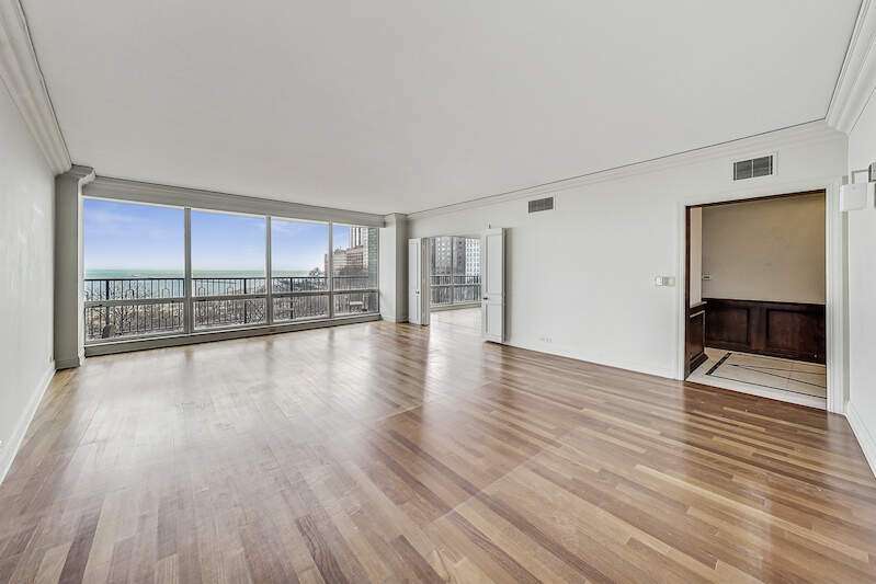 Welcome to the Carlyle~Expansive 1976 sq ft, Currently an extra large 1 Bd, 2.5 bath, plus balcony, Being Sold "AS IS". This is an Estate Sale ready for your interior designer to refresh & reimagine. Jaw Dropping Lake and Beach and Play Pen Views, from the Living, Dining, Kitchen and East facing Balcony. BEST Private seat to Chicago's Air and Water Show!!!!!! From the Primary Suite and west facing balcony you enjoy both City & dramatic Sunset Views. Marble floors along with a beautiful up-lit tray ceiling & wainscoting detail welcome you into the foyer. Hardwood floors are throughout the rest of the apartment. Motorized shade hook up on the front East facing windows. Primary Suite has two separate bathrooms and Lots of Closet space. In unit Washer Dryer. Zoned Heating and Cooling. One Valet spot and storage included. Only 2 units per floor. Seasoned Door and Maintenance team make this special building feel like you are living in a Grand 5 Star Hotel. A+ Service, Privacy and Security. Fun amenities include an roof top indoor swimming pool/spa, fitness center, sundeck with BBQ Grill, and a Magnificent Grand Ballroom with incredible views of the lake and catering kitchen for your next lavish party. Welcome Home! New July 1st assessments is $2203/mo which includes one parking spot and also includes the $149.00/mo supplemental reserve amount until December 2027.