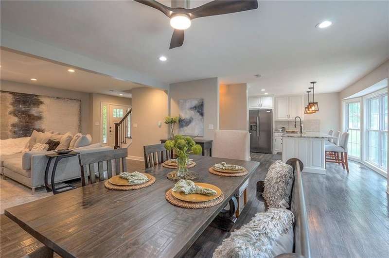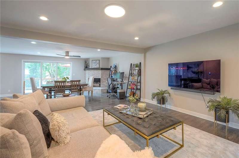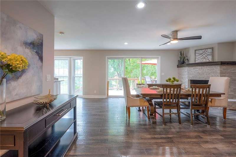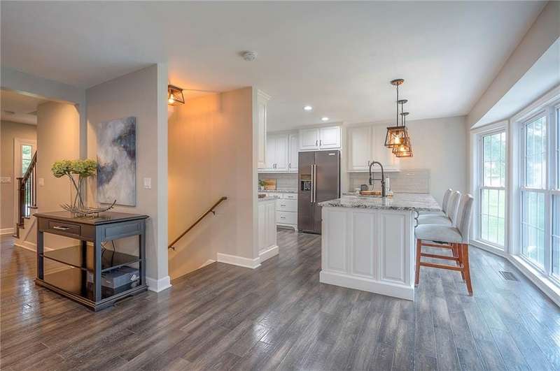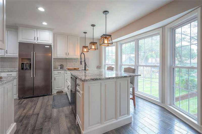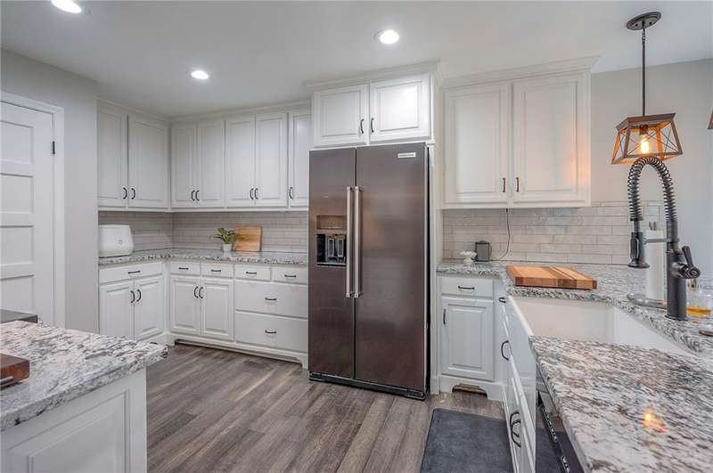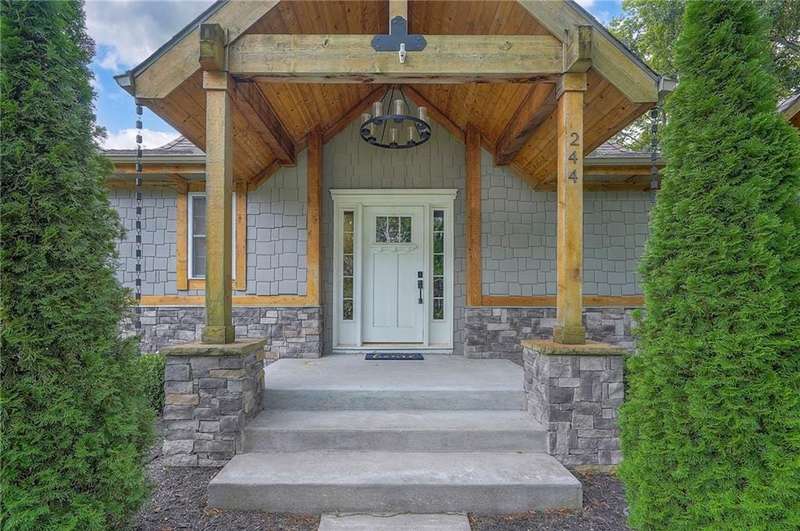 Tucked on nearly half an acre and just steps from the charming city park and tennis/pickleball courts, this beautifully remodeled home blends timeless character with modern luxury. Inside, dark distressed engineered hardwoods flow seamlessly across the main level, guiding you through the open dining and living area to a cozy gas fireplace. Sliding glass doors open to a new Trex deck where you can soak in peaceful water views. The chefs kitchen features custom cabinetry and premium granite countertops, thoughtfully matched throughout the home for a cohesive feel. Walk in pantry to hold all kitchen appliances. And functional island for in kitchen dining. The main-level primary suite offers tranquil water views, his-and-hers closets, and new spa-like bath with a soaking tub and a custom marble shower. Upstairs, two additional bedroomseach with water viewsshare a well-appointed bathroom with a tub/shower combo. The finished walk-out lower level is perfect for relaxing or entertaining, with plush carpeting, a warm fireplace, and a wall-mounted TV thats ready for movie nights. Ample storage keeps everything organized, while the extra-wide garage offers room for vehicles, hobbies, and all your outdoor gear.