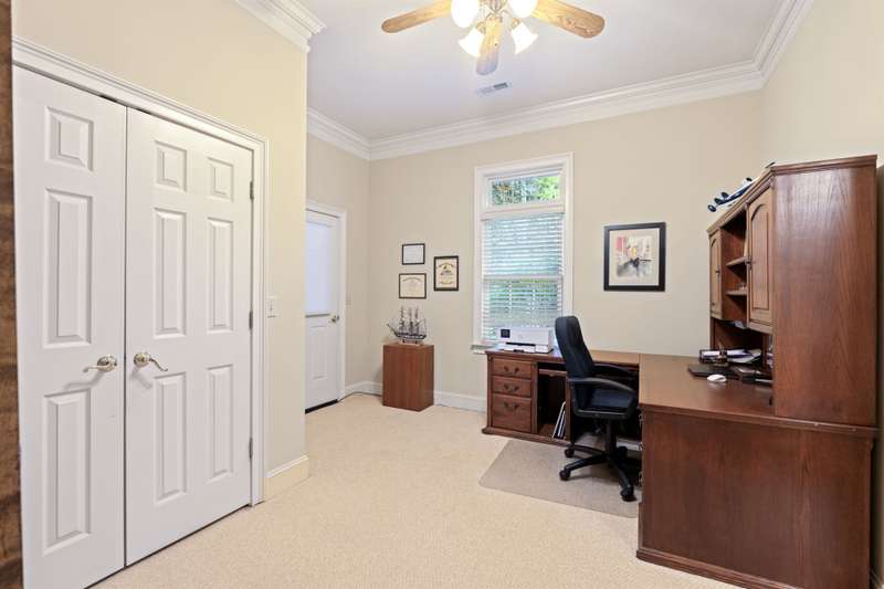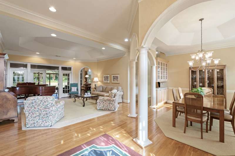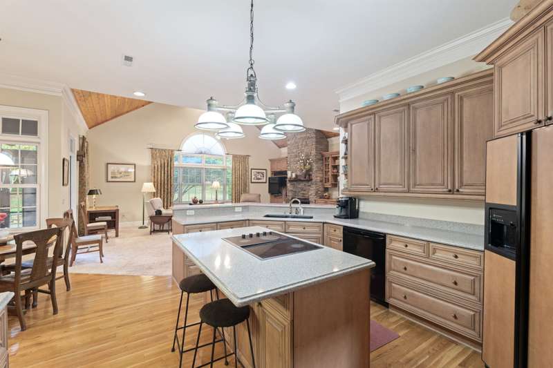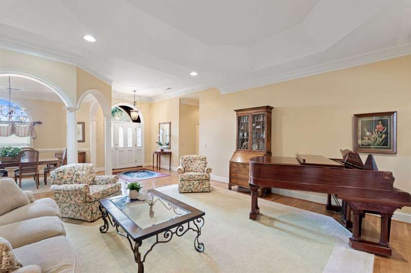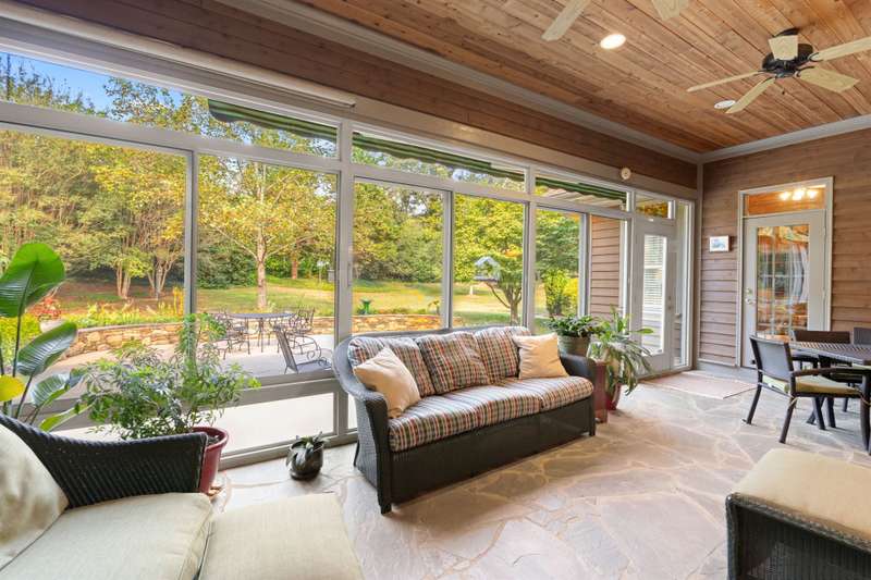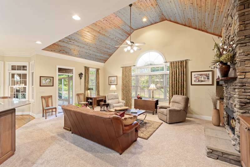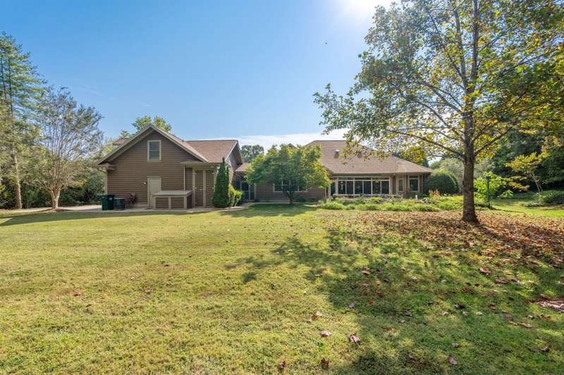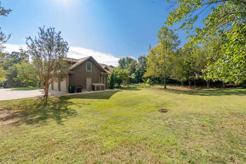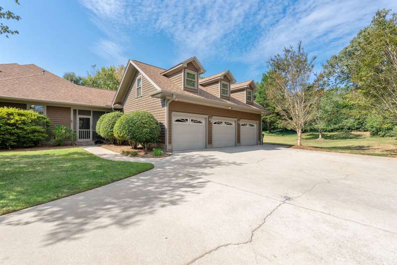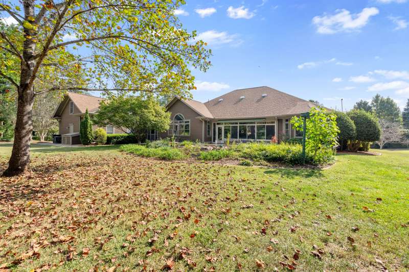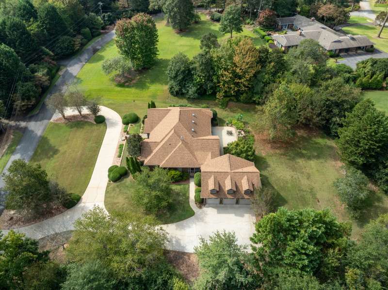 Welcome to 105 E Round Hill Rd, a stunning Southern Living-style home nestled in the prestigious Green Valley neighborhood of northern Greenville County. This thoughtfully designed property offers the ease of single-level living with the added benefit of an upstairs guest suite, above the attached garage, perfect for visitors, extended family, or a private home office. As you arrive, the professionally landscaped grounds, designed by Pedrick Lowery, the acclaimed landscape architect behind much of Falls Park in downtown Greenville, set a welcoming tone. The yard is fully irrigated and features an oversized drainage system in both the front and back, keeping the property completely dry even during heavy rains. Inside, elegance and comfort abound. The entry foyer opens to spacious living and dining areas, both highlighted by soaring ten to twelve foot coffered ceilings and intricate crown moulding throughout. The entertainer's kitchen features custom cabinetry, expansive countertops, and a central island offering both functionality and style. Just off the kitchen, a cozy family room with vaulted, premium cedar-clad ceilings flows into a light-filled sunroom with double-paned windows, perfect for bird watching and enjoying tranquil backyard views. The primary suite is a true retreat, boasting twelve foot, serene views of the private yard, a large walk-in closet, and a spa-inspired bathroom with double vanities, a garden tub, a spacious walk-in shower, and recent accessibility upgrades. Additional bedrooms are smartly arranged to ensure comfort and privacy, ideal for family living or overnight guests. The oversized three-car garage includes a versatile third bay, perfect for storage, a workshop, or hobby space as utilized by the previous owner. Upstairs, a wide staircase, designed to make moving furniture easy, leads to a generous bonus room with a full bath, offering endless possibilities as a guest suite, media room, home gym, or creative space. With its flexible layout, timeless design, and unbeatable location, 105 E Round Hill Rd presents a rare opportunity to enjoy refined Southern living in one of Greenville's most sought-after communities.