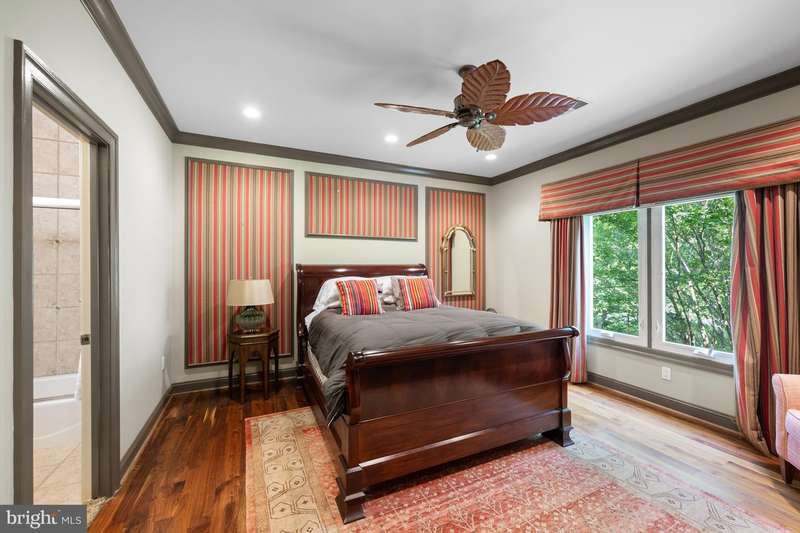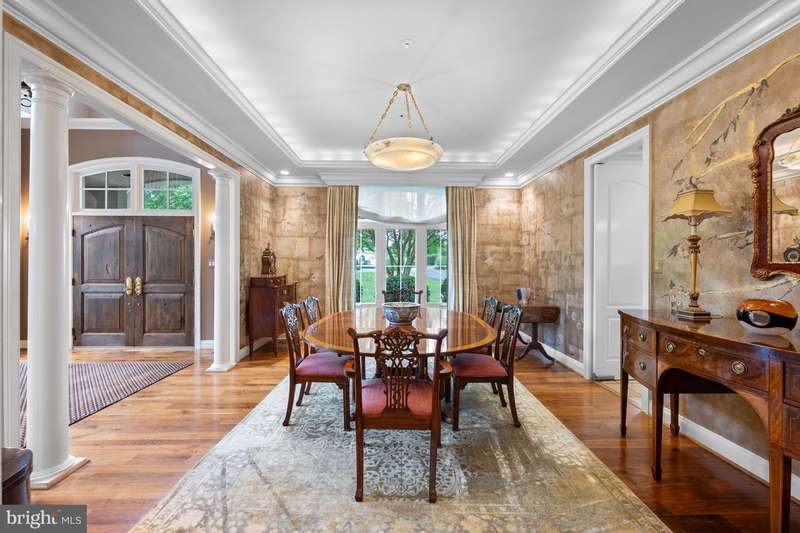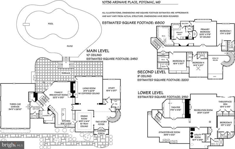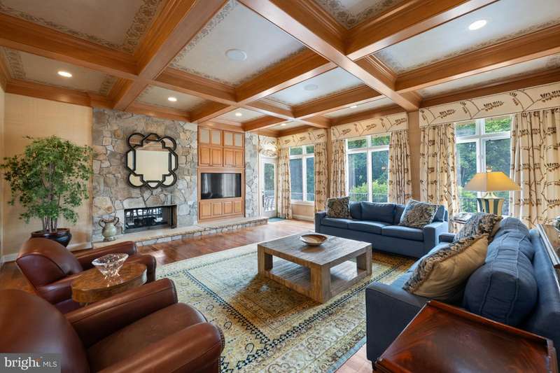 Award-winning builder Ted Visnic created this stunning stone-and-stucco custom home. Located on a private tree-lined street just minutes from Potomac Village, this immaculate and extremely well-maintained home is situated on two beautifully landscaped acres.The main level features a soaring, two -story Foyer with circular staircase with windows, custom chandelier. and balcony overlook. The Living Room with coffered ceiling, and stone floor-to- ceiling gas fireplace, the Dining Room with pillared entry and the private Study are easily accessible from the Foyer. The huge Chef's Kitchen with center island with seating, has granite countertops and light stained wood cabinets, Viking range with hood, SubZero floor-to-ceiling refrigerator and separate freezer . The Family Room/ Eating Area features a desk, stone gas fireplace and sliding glass doors to Terrace . The large Mud Room adjacent to the Kitchen has an informal Powder Room, Laundry Room, closet and provides easy access to the three car side entry garage.Four bedrooms grace the upper level each with ensuite bathrooms. The Primary Suite has a spacious Primary Bedroom with a tray ceiling with recessed lighting, a window seat with windows and an atrium door which leads to a Juliette Balcony overlooking the backyard and pool. The Primary Bathroom has dual sinks, separate tub and shower and also has a Juliette Balcony overlooking the pool.The finished walkout Lower Level provides additional options for a myriad of uses. A large Recreation Room with separate tablespace, a Home Theater with stadium seating, a gym with extra storage space, a Fifth Bedroom with ensuite full bathroom plus an additional full bathroom and changing closet complete the lower level. This distinctive home shows like new with newly added dual HVAC zones and thermostats, stereo system throughout, detailed moldings, custom walnut flooring, and exterior lighting.With fabulous indoor and outdoor spaces this is truly a home for a lifetime.
