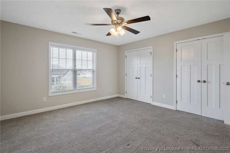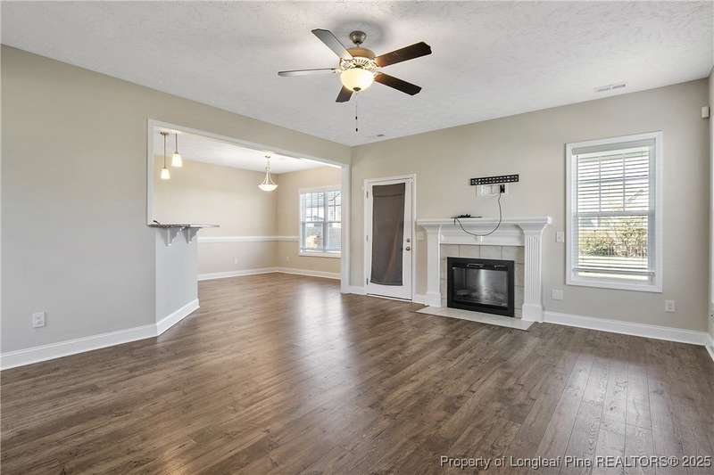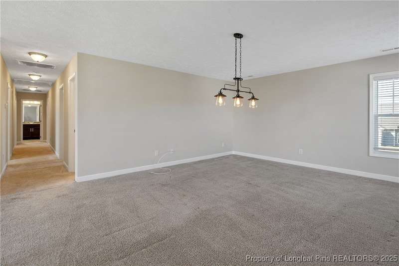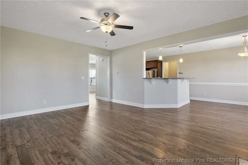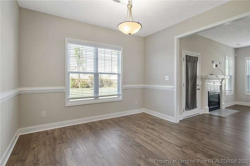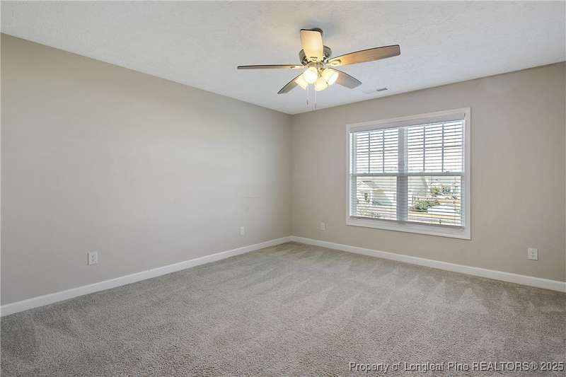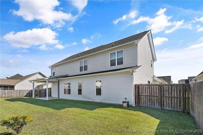Nestled in a peaceful suburban setting,, this expansive 4-bedroom, 3.5 bath family home offers an ideal blend of space, comfort, and convenience. Its prime location provides the tranquility of a quiet neighborhood while remaining easily accessible to I-95 and the sought after Cape Fear High School district. Upon entering, a bright, two-story foyer welcomes you inside. To the left, the formal dining room is defined by an elegant coffer ceiling, setting the stage for memorable dinners. The heart of the home is a spacious, open-concept kitchen & family room. The kitchen boasts an abundance of cabinet space, sleek granite countertops, and a full suite of stainless steel appliances, including the refrigerator. In the family room, a cozy fireplace with gas logs provides warmth on chilly evenings. A glass door opens to a covered back porch, creating seamless transition to the large backyard-perfect for a swing set, soccer goal or future pool. The private primary suite located on the main floor is a true retreat. It features a large walk-in closet and an en suite bath designed for relaxation, with a soaker tub, a separate shower, and a vanity with granite countertops. Upstairs, the home offers a flexible layout to suit your family's needs. Three additional bedrooms & two full baths provide ample space for family & guests. A large loft area can be used as a second family room or a dedicated game space for a pool table. For movie lovers, the generous bonus room already includes a projector, making it a ready-to-go home theater. This home is designed for modern family living, with distinct areas for gathering & entertaining, Don't miss this opportunity to own a beautiful & spacious family residence in a superb location.