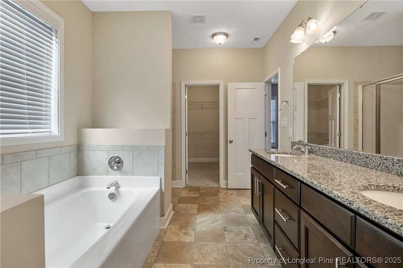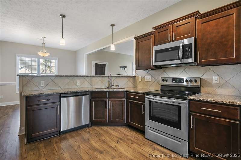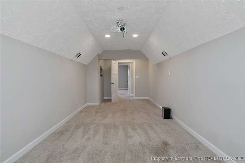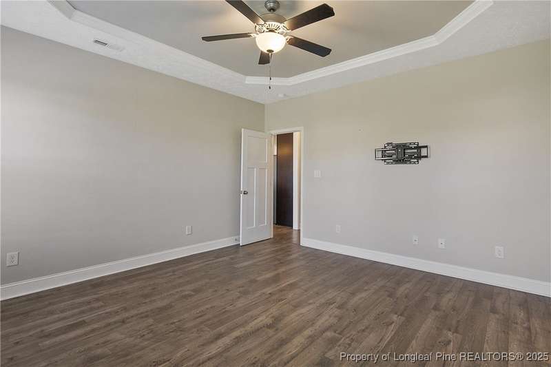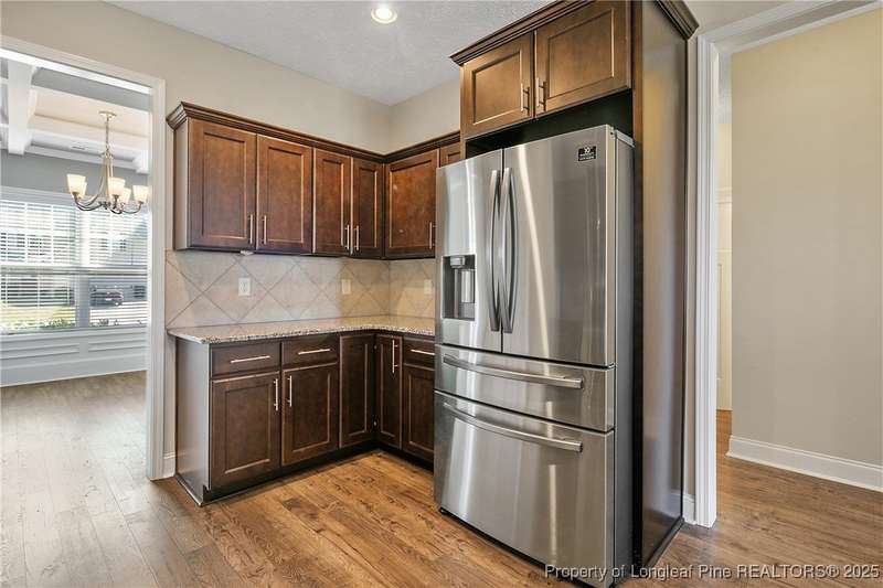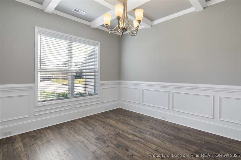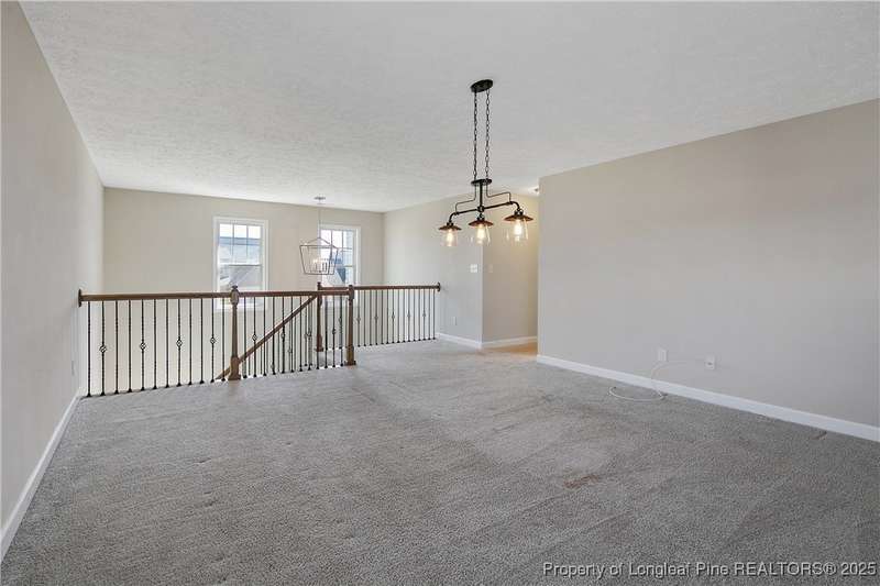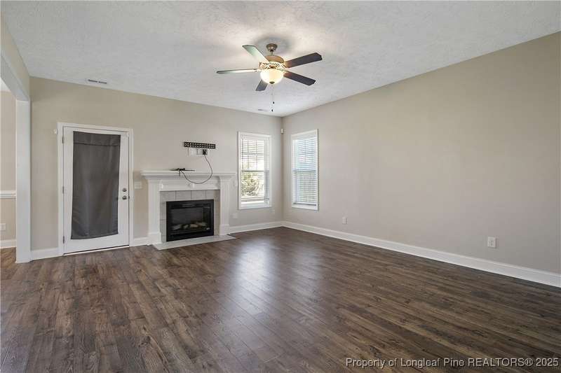Nestled in a peaceful suburban setting,, this expansive 4-bedroom, 3.5 bath family home offers an ideal blend of space, comfort, and convenience. Its prime location provides the tranquility of a quiet neighborhood while remaining easily accessible to I-95 and the sought after Cape Fear High School district. Upon entering, a bright, two-story foyer welcomes you inside. To the left, the formal dining room is defined by an elegant coffer ceiling, setting the stage for memorable dinners. The heart of the home is a spacious, open-concept kitchen & family room. The kitchen boasts an abundance of cabinet space, sleek granite countertops, and a full suite of stainless steel appliances, including the refrigerator. In the family room, a cozy fireplace with gas logs provides warmth on chilly evenings. A glass door opens to a covered back porch, creating seamless transition to the large backyard-perfect for a swing set, soccer goal or future pool. The private primary suite located on the main floor is a true retreat. It features a large walk-in closet and an en suite bath designed for relaxation, with a soaker tub, a separate shower, and a vanity with granite countertops. Upstairs, the home offers a flexible layout to suit your family's needs. Three additional bedrooms & two full baths provide ample space for family & guests. A large loft area can be used as a second family room or a dedicated game space for a pool table. For movie lovers, the generous bonus room already includes a projector, making it a ready-to-go home theater. This home is designed for modern family living, with distinct areas for gathering & entertaining, Don't miss this opportunity to own a beautiful & spacious family residence in a superb location.
