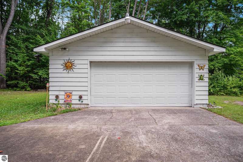 Excellent Up North Location! Just a quarter mile down the road from Sands Park beach and boat launch on Lake Manistee, close to area trails and located in the snowbelt for excellent snowmobilig. This well-kept home sits in a quiet neighborhood on a beautifully wooded oversized lot. Enjoy a spacious backyard with plenty of room for campers or outdoor activities. Inside, you'll find tasteful updates including new flooring and kitchen cabinetry, while the roof is less than 10 years old for added peace of mind. The large finished garage provides ample storage and flexibility for hobbies or projects. All of this is conveniently located less than 10 minutes from Kalkaska--perfect for year-round living or a Northern Michigan getaway!