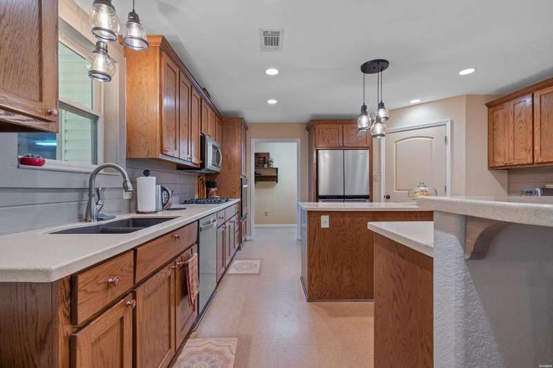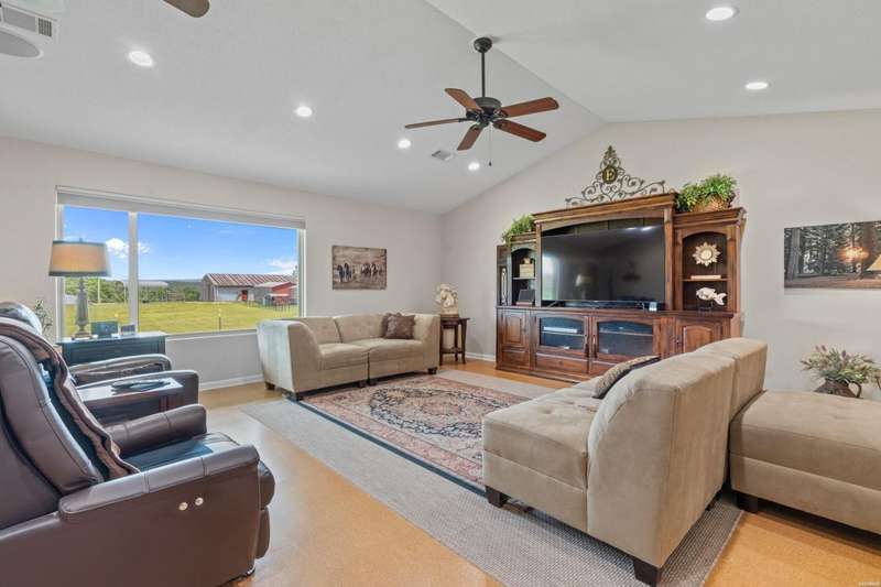 **Charming Ranch Estate Retreat! Your Dream Homestead Awaits!** Welcome to your private oasis! Nestled in the heart of nature, this stunning ranch estate offers a harmonious blend of rural charm and modern convenience, perfect for horse lovers and hobby farmers alike. The home sits on top of ridge with views in all directions. Step inside and be greeted by an expansive open-concept layout where a vaulted ceiling soars overhead, creating a bright airy feeling throughout. Beautiful cork floors underfoot not only add a warm aesthetic, but also provide both durability and style. Enjoy preparing meals in the kitchen while you entertain family and friends. Custom soft close cabinets, large island and upscale appliances make it easy to enjoy. Just off of the kitchen you will find a very large screened in porch where you will enjoy soft breezes and beautiful views. The spacious master suite features a luxurious ensuite with his/hers walk in closets. The large master bath features his/her vanities, water closet and a large shower. The Second and Third bedroom are thoughtfully placed on the other side of the home from privacy. The third bedroom is currently being utilized as an home office. There is a 'bonus' room on the same side as the two guest bedrooms. The exterior is equally impressive as it offers almost 12 acres! This inviting outdoor space is perfect for hosting summer barbecues or unwinding after a long day while watching sunsets. Fenced and cross-fenced, this property includes a spacious 7 stall horse barn designed for functionality without sacrificing style. Two tack rooms and a loafing shed. There is also a chicken coop that holds up to 40 hens. The larger workshop features automatic lift doors on each end of the large workshop for easy access to equipment or to let the breeze through while you get some work done. There is also a welding outlet in this shop. This property features a covered shed for all your outdoor equipment as well. Also conveying with the home is a ambient weather system and a Yoderbilt greenhouse to keep your plants looking beautiful year round. The sprinkler system covers the main yard and garden area and also features a drip system. There are so many amazing features for this estate. Make your appointment today and take a look for yourself. This gem will not last long!