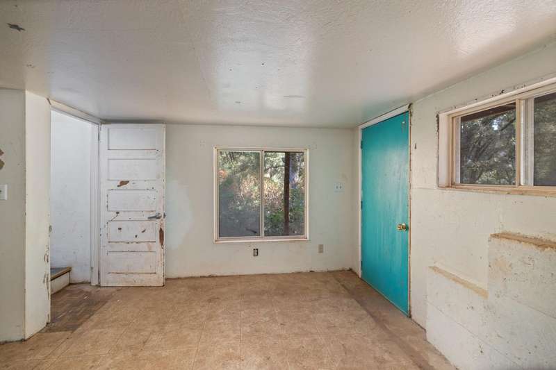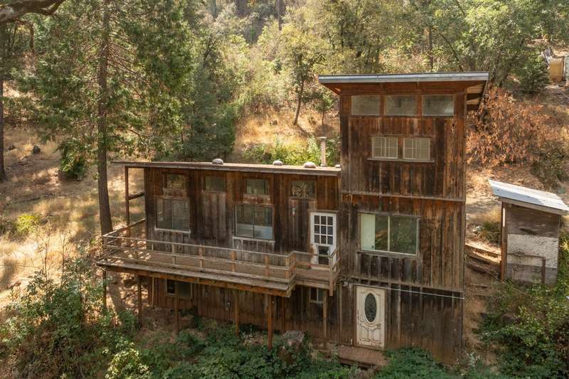 Bring your vision to life near Yosemite National Park! This unique fixer-upper opportunity sits on 5.25 acres just a short drive from Yosemite National Park. Per county records this property consists of TWO units; a main residence and a studio cabin. The contemporary style home was built in 1954 and was remodeled with permits in 1980 adding an additional story and 200+ sf to the 1st floor. With dramatic celling height featuring exposed wood beams and numerous windows, this multi level homes exudes character and the bones are definitely there to start your rehab project. The main level bathroom features a clawfoot tub and is plumbed for shower and the basement level bathroom has a shower stall. The roof was replaced in 2018 and solar tubes installed add so much brightness to every room! The cabin is 192 sf, was built in 1940 and will definitely require some work to make it what it could be. Four sturdy walls with electrical, a roof in fair condition and hardwood floors provide something to start with and colorful shutters hint at the charm waiting to be restored, making it a great candidate for a guest house or creative retreat. There are trails through the interior of these 5.25 acres perfect for a little hike with slight change in elevation or would even be fun on an OHV. A seasonal stream runs through the front of this parcel and plump delicious blackberries grow wild. With water, power and septic already in place this home already has solid fundamentals and is ready for your updates and finishing touches.