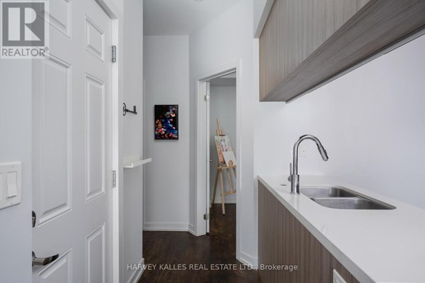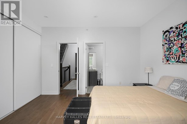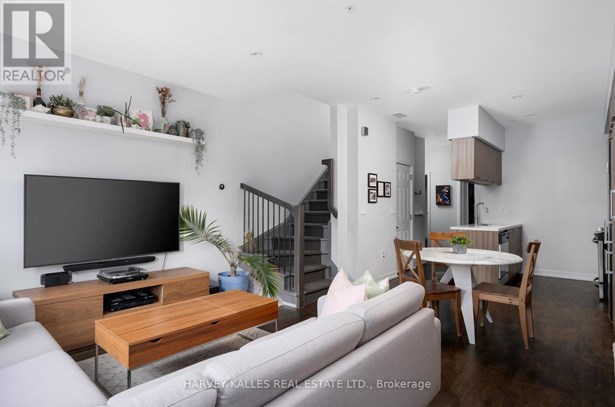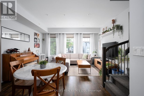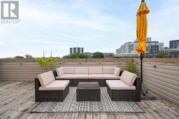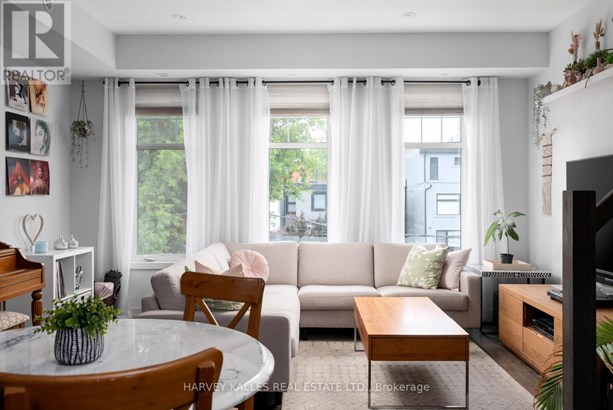 Welcome to Riverside Towns, where space, light, and lifestyle meet. This rare 1,380 sq. ft. end-unit townhome impresses with its wide, sun-filled layout, hardwood floors, and versatile office/den. The sleek kitchen is a chefs delight with Caesarstone counters, stainless steel appliances, gas stove, and an oversized pantry, seamlessly connecting to the open living and dining areas for both effortless entertaining and everyday comfort. A convenient main floor powder room completes the picture.Upstairs, two spacious bedrooms offer abundant storage, including wall-to-wall closets and a skylit second bedroom. The serene primary suite features west-facing windows and a private ensuite.The highlight is a sprawling rooftop terrace with gas BBQ hookup and spectacular CN Tower and skyline views, creating an unrivaled setting for al fresco dining, entertaining, or simply unwinding at sunset.Perfectly positioned in Riverside, just steps to Queen East boutiques, dining, the Broadview Hotel, 24hr TTC, and the DVP, this move-in-ready home is a rare offering that combines function, style, and one of the best rooftops in the city. (id:6370)