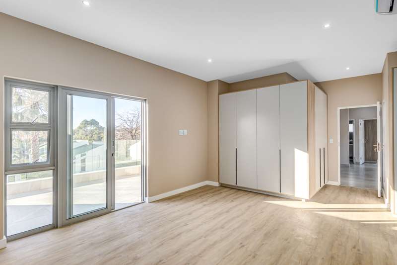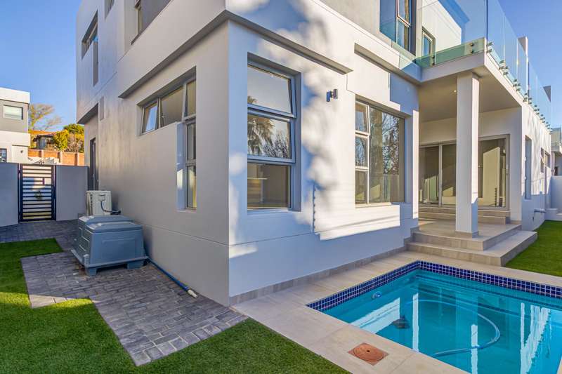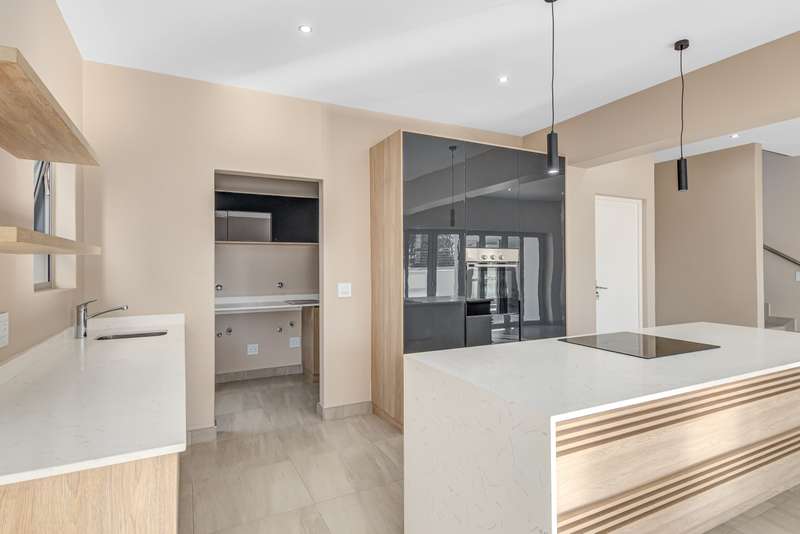 Architectural Sophistication Meets Functional Family Living Discover luxury, space, and style in this contemporary 4-bedroom home designed for modern family life. Nestled in a secure estate in sought-after Bryanston, this residence offers seamless indoor-outdoor flow, elegant finishes, and peace of mind with a full backup power system. Ground Floor Features: Striking double-volume covered entrance Expansive open-plan dining area Air-conditioned lounge leading to a covered terrace Terrace opens to a sparkling pool and private garden Stylish kitchen with central island, flowing into a cozy family room Separate scullery with access to outdoor drying courtyard Guest cloakroom Double automated garage En-suite staff accommodation First Floor Highlights: Elegant, air-conditioned main suite with luxurious en-suite bathroom and it Includes double vanities, freestanding tub, walk-in shower, private toilet and a huge balcony. Three additional spacious and tastefully designed bedrooms with one ensuite / private balcony. The other 2 bedrooms share a full tastefully designed bathroom. Open-plan pyjama lounge — perfect for relaxed family evenings Modern amenities include: Built in double door fridge in the kitchen 5KW inverter 10KW lithium batteries Fibre-ready connectivity Prime Bryanston Location: Conveniently located near top schools, lifestyle centres, medical facilities, and major transport routes. Nearby Amenities: Shopping & Entertainment: Sandton City, Nelson Mandela Square, Fourways Mall, Montecasino, Nicolway Schools: St Stithians, Brescia House, Curro Bryanston, Sandton Crawford, St Peter’s College Hospitals: Sandton Medi-Clinic, Morningside Clinic Country Clubs: Bryanston Country Club, Riverclub Golf Course Property Details: Purchase Price: R5 485 000 (VAT Inclusive) No Transfer Duty Projected Rates: ± R2 600 Projected Levies: ± R3 200 Occupation: Immediate This home offers a perfect blend of comfort, security, and timeless design — ready for you to move in and make it your own.