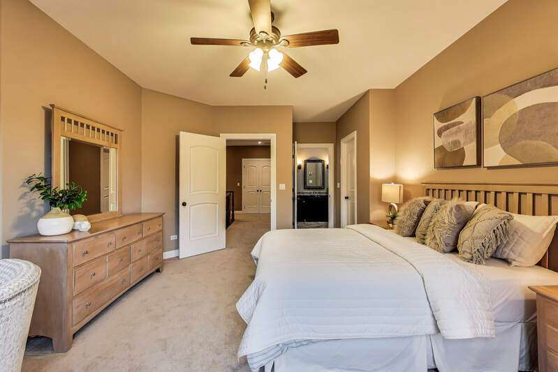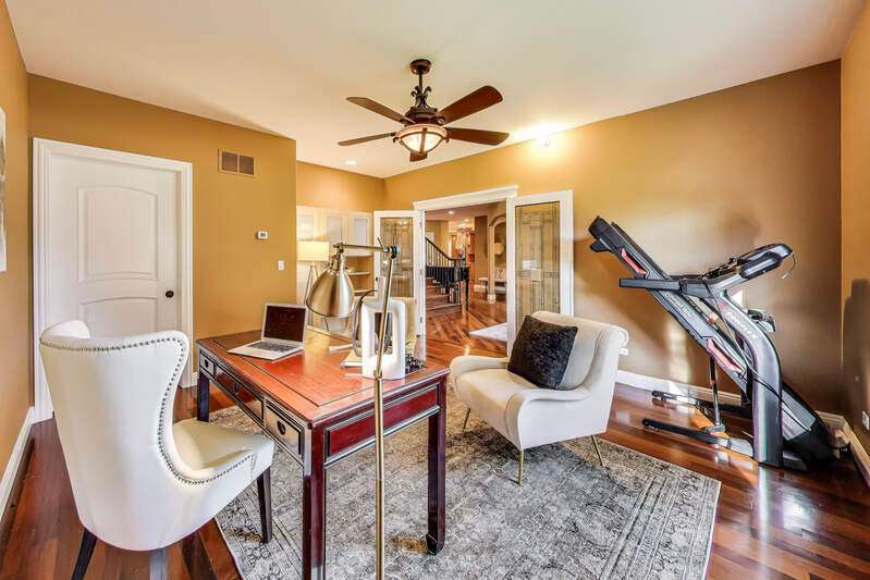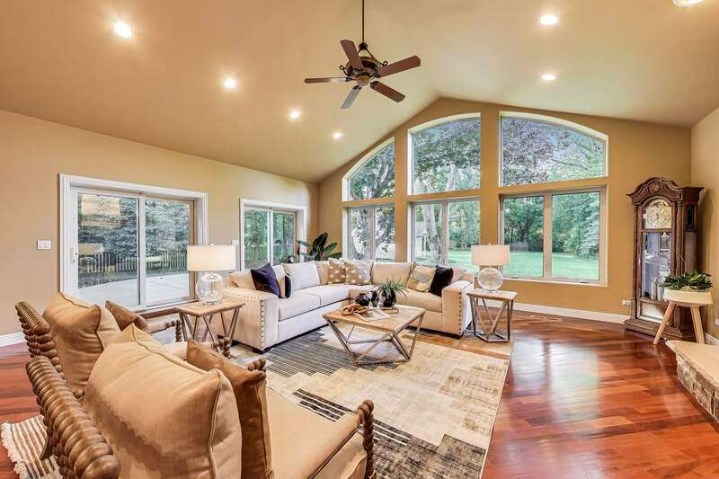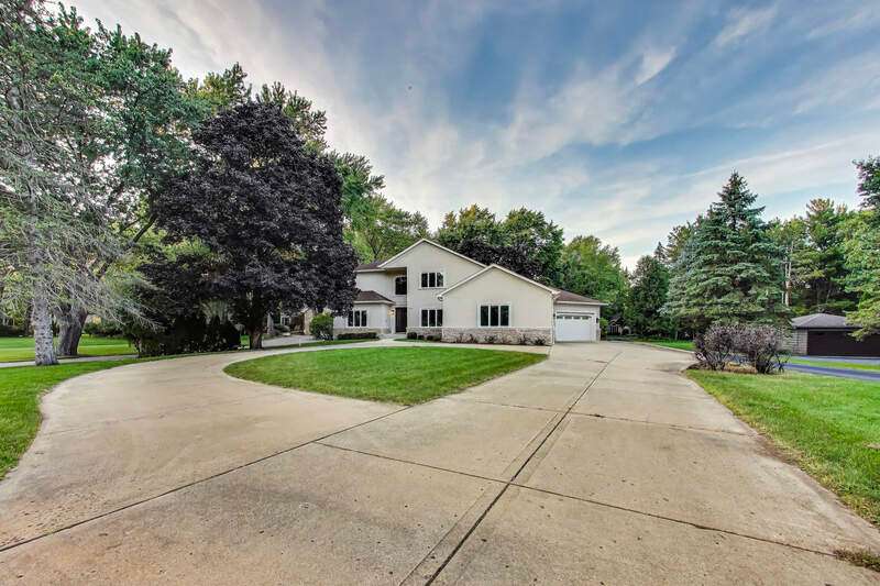 Welcome to your dream home! This stunning custom-built residence is nestled on a sprawling 100 x 500 private lot, offering you both space and privacy in a serene setting. With over 4,400 square feet of thoughtfully designed living space, this home is perfect for fulfilling all your needs and desires. As you drive up to the property, a grand circular driveway greets you, leading to the impressive entrance of this magnificent home. Step inside and be welcomed by a two-story foyer that sets the tone for elegance and hospitality. The separate dining room provides an ideal space for formal gatherings, while the private office (or 5th bedroom) with French doors offers an inviting work-from-home environment. The open-concept layout is perfect for entertaining, highlighted by a grand 14-foot vaulted family room adorned with wall-to-wall windows that flood the space with natural light. Cozy up in front of the stunning stone fireplace on cooler evenings, making this area a warm and inviting focal point. For the culinary enthusiasts, the chef's kitchen is a dream come true, featuring generous counter space, a separate island with additional seating, and plenty of cabinets for all your storage needs. Retreat to the luxury primary suite, where a spa-like bathroom awaits, complete with a walk-in shower, a relaxing jacuzzi tub, towel warmer, and a double vanity. Don't miss the exquisite walk-in closet, meticulously organized for all your wardrobe essentials. Convenience meets functionality with a main-level laundry room positioned just off the garage, providing an excellent drop zone for daily life. Moving to the second level, you'll find two spacious bedrooms connected by a stylish Jack-and-Jill bathroom, boasting a double vanity. An additional bedroom with a private full bath completes this level, ensuring comfort for family and guests alike. Venture into the full basement, brimming with potential for additional living space. With roughed-in plumbing for a full bathroom, this expansive area can easily transform into a recreation room, gym, or personalized storage haven. Plus, enjoy direct access to the heated four-car garage, adding to the home's practicality. Step outside to discover a picturesque lot with lush landscaping, a spacious patio equipped for a hot tub, and a shed offering electrical service and ample storage options. This home features a state-of-the-art in-floor radiant heating system throughout, including garage floors, ensuring warmth and comfort in every corner. Constructed with durable Insulated Concrete Forms (ICF), it guarantees energy efficiency and longevity, making this residence a solid investment for years to come, with exterior walls crafted from solid concrete for superior protection and insulation. Conveniently located just steps from Palatine Hills Golf Course and close to Deer Park, where shopping, restaurants, and vibrant nightlife await. Enjoy easy access to Metra in downtown Palatine, enhancing your connectivity to entertainment and beyond.