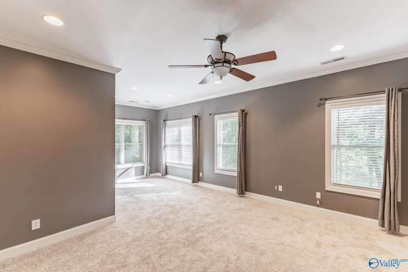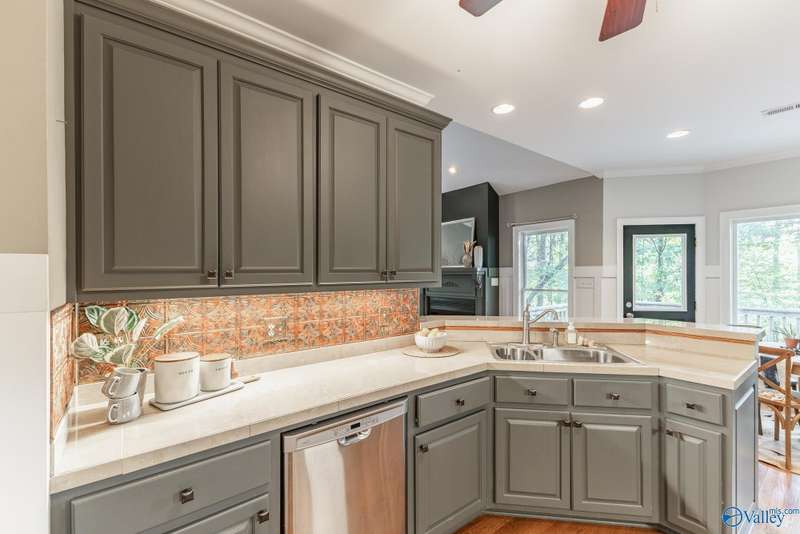 Spacious 4-bedroom, 4-bath home w/ a walkout basement on a private treed lot in highly desirable Elkmont Rural Village! Main level offers large living areas with a gas fireplace, formal dining, breakfast nook, pantry, and elegant wainscoting, complemented by oversized windows that flood main areas with natural light. The lower level features a built-in bar, entertainment space, office, and exercise room. Step outside to a deck overlooking serene greenery, perfect for entertaining or relaxing. Enjoy walking, hiking, and horse trails, tennis and pickleball courts, playgrounds, and a pavilion, NO HOA, providing a quiet, active lifestyle with unmatched access to nature & scenic surroundings.