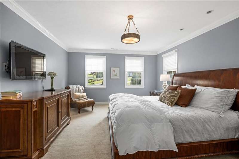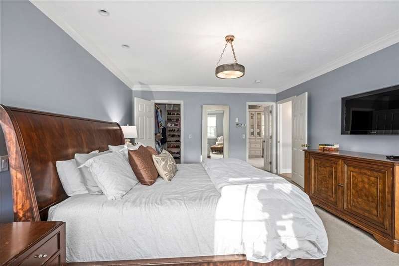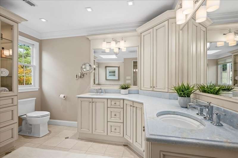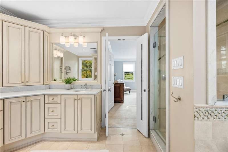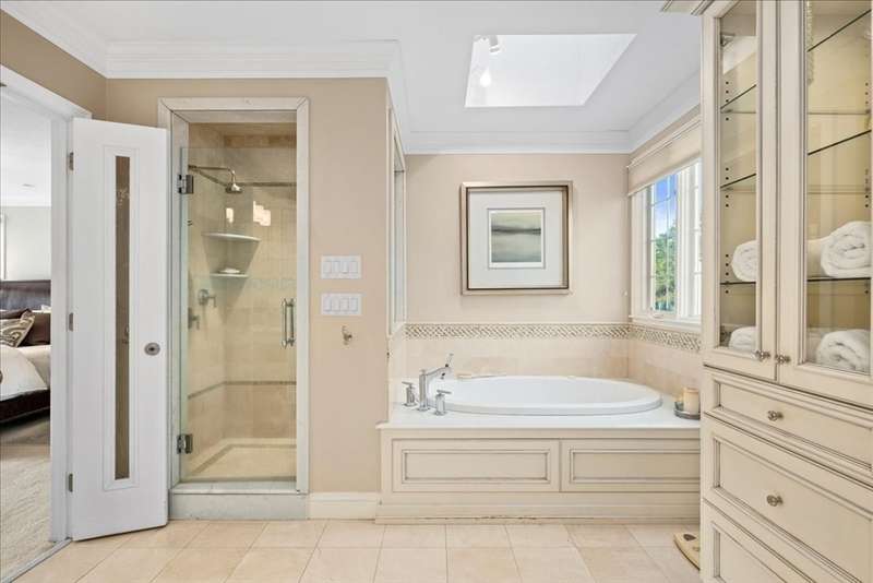 Striking Transitional Colonial on spacious corner lot w/outstanding curb appeal custom built by noted, local builder*Welcoming custom entry portico w/double mahogany entry doors w/custom glass panels*Sense of arrival Foyer w/elegant turned stairs sets the stage for excitement*LR/DR combo w/detailed moldings*Impressive Study w/custom built-ins*Amazing maple Kitchen w/double level island, pro-style cooktop, double ovens, & custom painted hutch opens to vaulted Family Room w/designer carpet, gas fireplace & wet bar*2nd level offers romantic Primary Suite renovated by noted interior designer w/stunning marble bath w/tiled shower & sumptuous air jet tub & customized, oversized double vanity*3 other nicely sized bedrooms have ample closet storage (2 have WI closets!) & custom built-in*Finished walk-out lower-level w/large windows & slider offers great Game Rm space plus private guest suite (bdr 5) w/full bath plus Office w/French doors for that private getaway*Very sunny exposure*