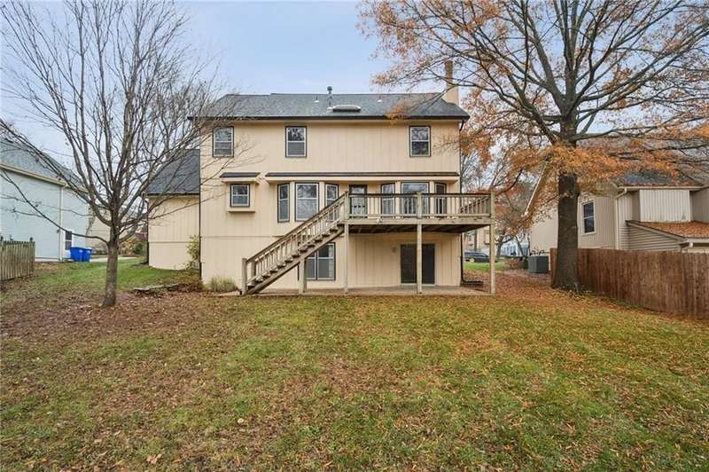 Bring your design inspiration to this two story home with great potential in popular Lenexa location, walking distance to grade school, city park, and shopping! HOME IS ON A WALK OUT LOT BACKING TO GREENSPACE! Exterior has been recently painted, plus newer roof, HVAC, and hot water heater. All of the big items are taken care of! Finish the basement and add even more living space. If you work from home, you'll love the office on main floor, plus a formal dining room that could provide a second office! Beautiful bay windows, wet bar in Great room, laundry on bedroom level. Enjoy sunrise with your moring coffee on the deck, and afternoon shade for your dinner grilling, overlooking a spacious back yard! HOME IS BEING SOLD AS IS.