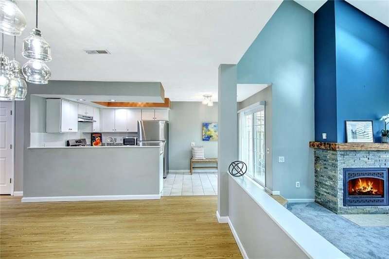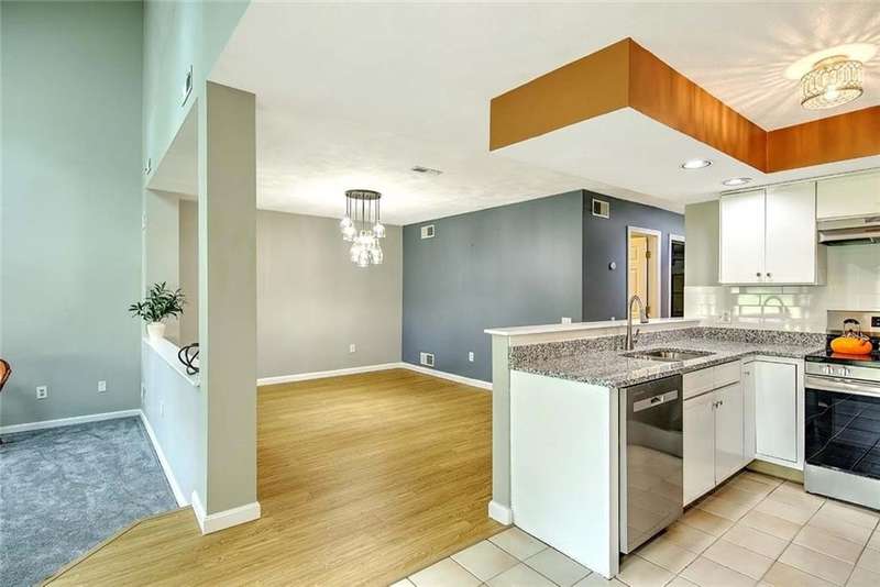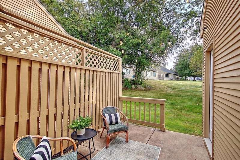 Exceptional 2 bed, 2 1/2 bath townhouse in the popular Louisquisset Country Club Condominium. This home has been recently updated and offers quick occupancy and absolute move-in ready condition. New high grade vinyl flooring greats you at your private entrance and continues through the hallway and into formal dining room. The open kitchen features many new updates including all new: granite counters, stainless sinks, microwave, stainless dishwasher plus new backsplash and cabinet hardware. You can enter your private patio through double doors here or through a door in the living room that also opens to your outdoor space. The living room is warmed by a gas fireplace and features a wall of windows that look out over the sweeping lawns. An ample guest bathroom and laundry room complete this floor. Upstairs are two generous bedrooms with attached bathrooms: primary has a walk in closet and a beautiful white bathroom with cathedral ceiling and skylight while the second bedroom also has a new white bathroom with shower stall. The attached garage offers additional storage. The amenities at Louisquisset are numerous: golf course, clubhouse,restaurant, tennis courts, swimming pool and beautiful grounds that include a pond with fountain and many green spaces to enjoy. Nearby shopping and easy highway access add to the convenience. Don't miss this excellent opportunity to make this your new home! EXTERIOR TO BE PAINTED. $800 ASSESSMENT WILL BE PAID BY SELLER AT CLOSING.