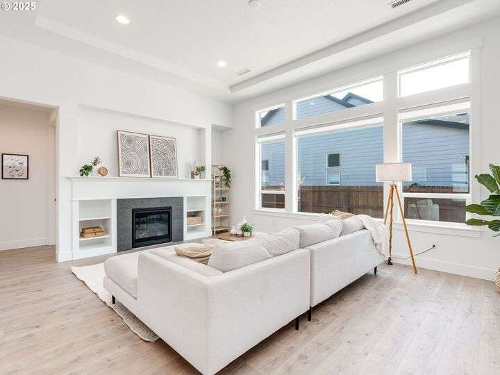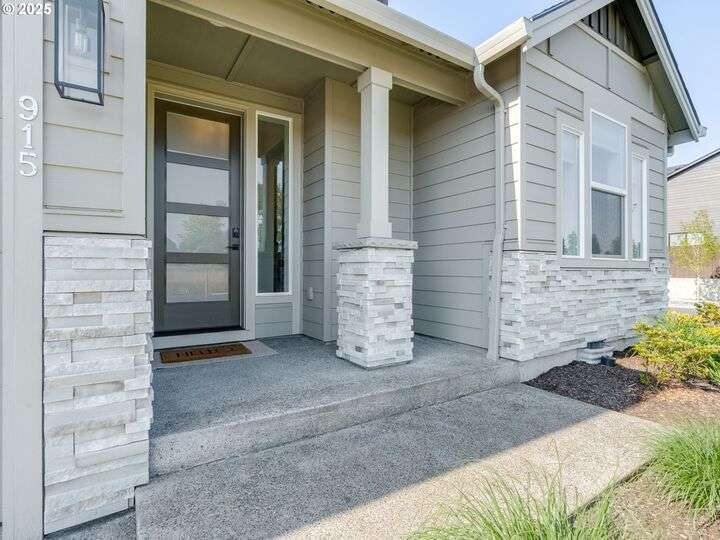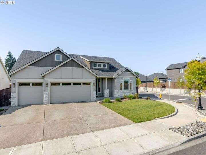 Seller offering additional Closing Cost credit to buyer with use of Preferred Lender! There is so much to love in this exceptional home with the primary suite on the main, a three car garage and nearly 100k in interior and exterior upgrades! The gourmet kitchen is a chef’s dream with a 5 burner gas cooktop, built-in double ovens, quartz countertops, butler’s pantry and a spacious extended island. With an abundance of natural light, the great room is both cozy and modern featuring high ceilings and a gas fireplace surrounded by built-in shelving. Sliding doors open to a lovely covered patio and expansive paver patio creating options for outdoor living surrounded by low maintenance landscaping. The primary suite includes a freestanding soaking tub, double sinks, tile walk-in shower, and an over-sized walk-in closet. A perfectly appointed office and guest half bath round out the main level. Upstairs, find a large bonus room, 2 additional bedrooms (with extended closets), full bathroom, laundry room and additional storage. Neighborhood HOA includes front yard landscaping. Nature trails, shopping and restaurants are close by for your convenience.