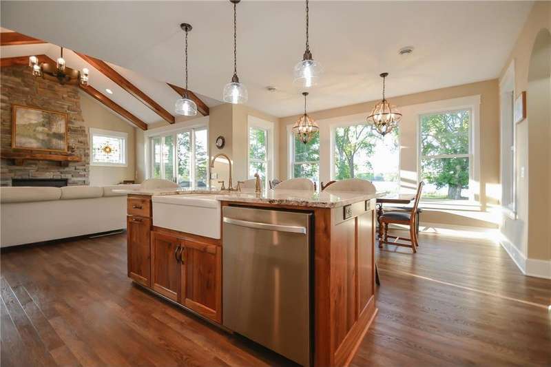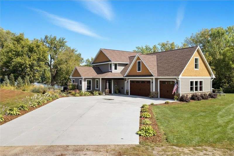 Welcome to this extraordinary custom-built lake home on the shores of Indian Lake, offering 419 feet of pristine lakeshore and nearly two acres of privacy! Designed and built in 2022 by CAP Custom Homes, this beautiful home and property combines timeless craftsmanship with modern luxury. Inside, the main level is thoughtfully designed for comfort and elegance, featuring cathedral vaulted ceilings, large Marvin® windows framing sweeping lake views, and a striking gas fireplace with an 1890s reclaimed mantle. The open-concept layout includes a spacious dining area, a gourmet kitchen with Schlangen’s Custom black walnut and painted cabinetry, quartz countertops, a granite island, and professional-grade appliances including an eight-burner cooktop and Italian ILVE oven. A walk-in pantry, mudroom with lockers, and main-floor laundry with Samsung washer/dryer add convenience and functionality to the main level. The primary suite is a true retreat with lakeside views, direct patio access, and a luxury bathroom with a steam shower, double sinks, champagne gold fixtures, and a secure walk-in closet designed as a storm shelter with 9-inch concrete walls and a steel door. Step outside to the patio and enjoy the 11-person swim spa, new in 2024! Upstairs, you’ll find a cozy loft family room, two additional bedrooms, a full bath with jetted tub, and a spacious multi-purpose playroom with dual heat/air. Throughout the home, you’ll appreciate the warm LVP flooring, arched Tuscan-inspired accents, and soft-close cabinetry. This home is as functional as it is beautiful, offering in-floor heat on the main level, a whole-house water filtration system, a 22KW whole-home generator installed in 2023, and a 1,000-gallon propane tank (rented). The exterior showcases LP® SmartSide® siding and shakes, a concrete driveway, and an oversized heated/insulated three-stall garage with in-floor heat, a floor drain, and mini-split air conditioning. The outdoor setting is unmatched with professionally designed landscaping, gardens, fruit trees, pines, tranquil waterfalls, and more! The sandy beach leads to a seasonal cabin complete with a bathroom, shower, and sink, while a large storage shed provides extra space for lake toys and equipment. Adding to its appeal, this home is conveniently located about 50 miles from the Twin Cities metro area. Maple Lake is only 10 minutes away and Buffalo approximately 20 minutes away, providing easy access to parks, retail, schools, and more! This Indian Lake retreat is truly one-of-a-kind as a nearly new executive lake home with timeless design, unmatched craftsmanship, and every detail carefully considered. One-year home warranty is included for added peace-of-mind!