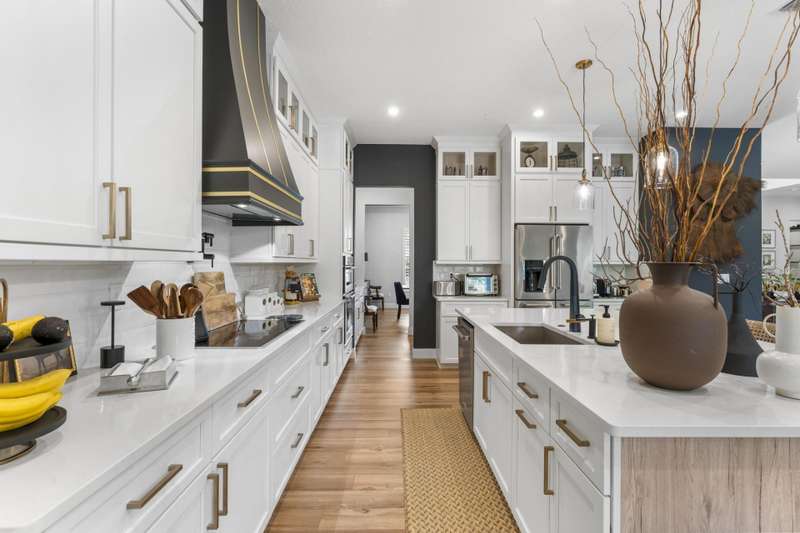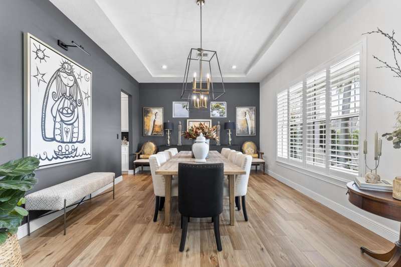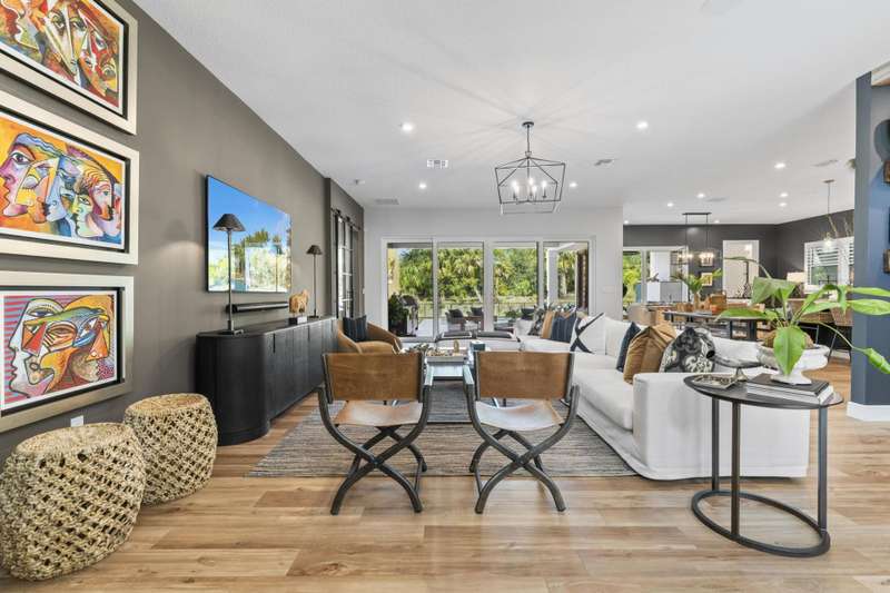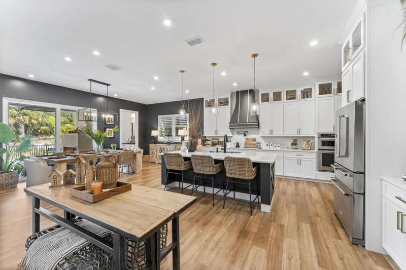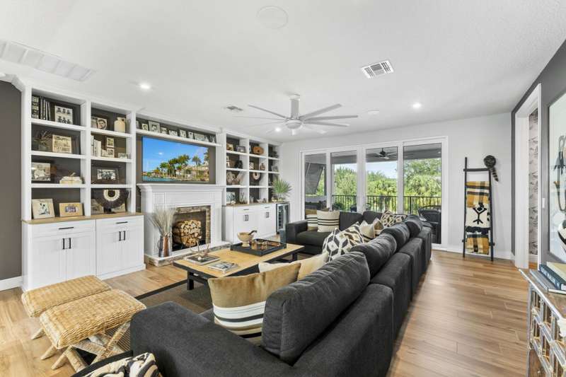 Exclusive Langford Landing Enclave! 40FT BOAT SLIP! Perfectly oriented with preserve vista, impossibly private in feel. Soaring 2-story foyer entry. Open concept, with distinct spaces, including living, dining, and dedicated office. Designer custom kitchen, with large island, and butler pantry. Downstairs Main Suite with custom His/Her closets, pass-thru shower, & spa tub. Upstairs, 4 guest beds with en suite baths, living area, and wide balcony. Full impact glass, Sonos system, integrated security, up/down laundry, 24kw generator/500 gal tank. 2024 new saltwater pool, outdoor living rm w/gas fireplace, modern outdoor kitchen. True 3 car garage for enthusiasts, w/ custom cabinetry and rod storage. Residence has private 40FT boat slip & 24k lift at on-property marina.