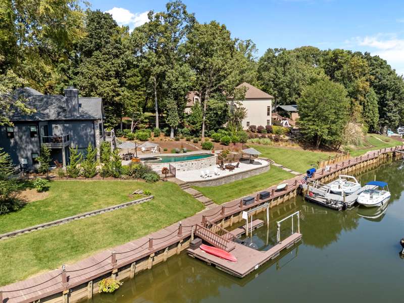 Welcome to 21430 Blakely Shores. This exceptional waterfront residence offers the ultimate in Lake Norman living, with extensive updates that blend modern luxury, timeless design, and everyday comfort. A beautiful arched front door makes a striking first impression, while new premium windows and sliders throughout the home fill each space with natural light and create effortless indoor-outdoor living. The thoughtfully designed layout offers open and inviting living spaces, anchored by a chef's kitchen featuring a Wolf stove/oven and complemented by a custom-built bar with ice maker, refrigerator, and wine fridge?the perfect hub for entertaining. The spa-like primary suite provides a true retreat with custom closets, heated floors, and a serene atmosphere designed for relaxation. The main level also includes a living room, great room, dining room, breakfast room, laundry, and two additional bedrooms. The finished basement extends the living space with two additional bedrooms, a billiard room, rec room, office, den, and versatile flex space to suit every need. Beyond the walls of the home, a resort-inspired lifestyle awaits: enjoy sun-soaked days by the pool, unwind in the hot tub or sauna, or gather with friends and family around the fire pit. A new custom Trex dock with a 6,000-pound lift makes boating and lake access effortless, while custom landscaping and lighting enhance the grounds and create a vibrant, welcoming outdoor environment. With a sprinkler system keeping the lush grounds healthy and outdoor spaces designed for both relaxation and celebration, every detail enhances the experience of lakeside living. Ideally located near Lake Norman's best shopping, dining, and recreation, 21430 Blakely Shores is more than a home?it's a destination for connection, comfort, and exceptional lake living.
