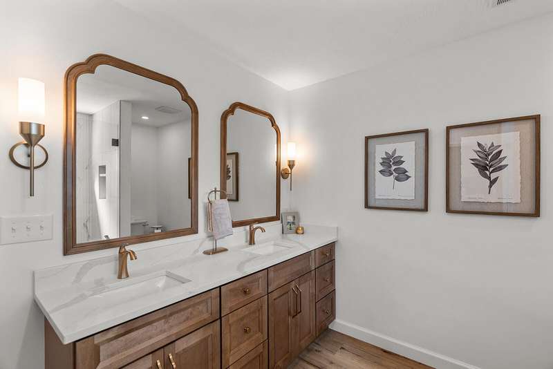 OPEN HOUSE 9/28 1-4pm - Where renovation meets reinvention...this better than new home blends the charm of traditional space with modern updates throughout. No surface left untouched. NEW roof, NEW A/C, NEW flooring, NEW doors, trim & paint, NEW ductwork, NEW appliances, NEW cabinetry & more! Custom touches include built-in vent hood, fireplace mantle, redesigned staircase, fluted tile shower, all NEW modern fixtures. TWO primary suites fit multi-generational living and a refreshed covered patio and fenced backyard add extra room to relax. Must mention the low-cost, optional Pool Association is a bonus summer retreat. All this located within steps of the 6-mile South Creek Greenway trail, Horton Smith Golf Course, Nathanael Greene park & nature center, and dont forget the new Target and Chickfila! Welcome to Nolting Avenue luxury.