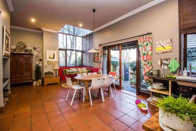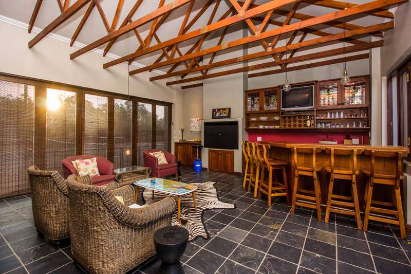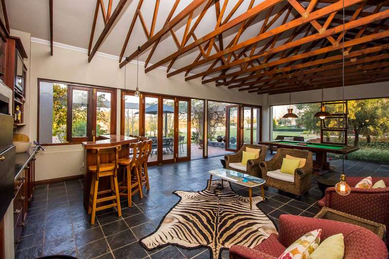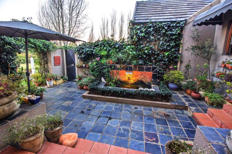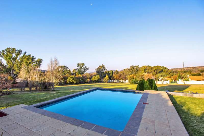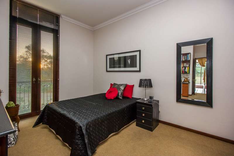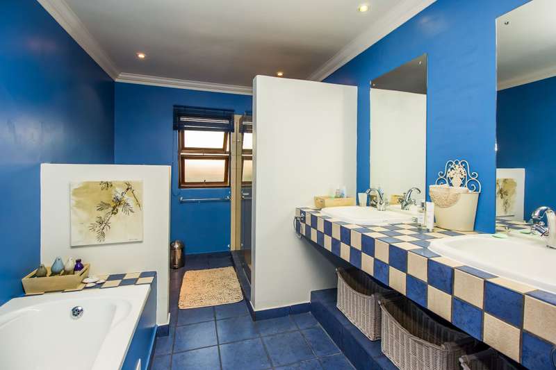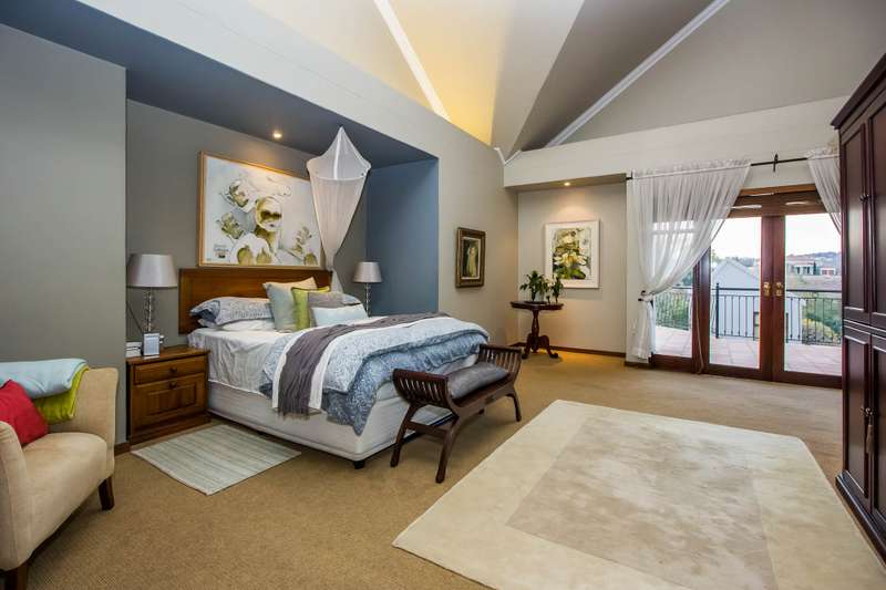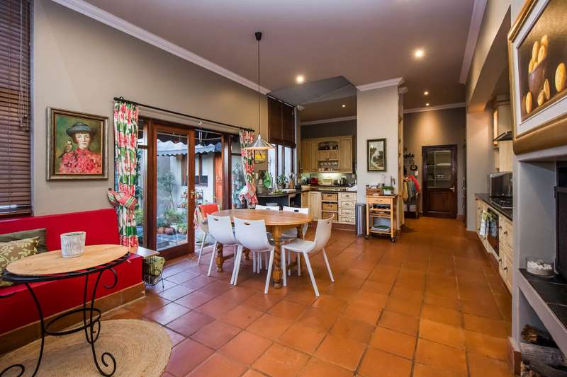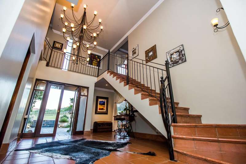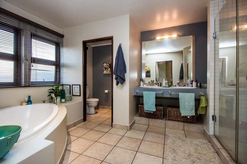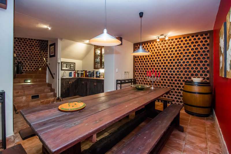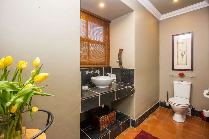 Tranquility and serenity in a secure Estate ideal for a family to grow and play. Built in a modern yet classical style this home offers a double storey with 4 bedrooms, a wine cellar and separate guest cottage. (PLEASE NOTE: THE HOUSE IS CURRENTLY UNFURNISHED and the photo's were taken at a prior date.) Huge inter flowing living spaces with double volume windows allowing unsurpassed views and a natural flow of light in to the house. The kitchen is the heart of the home with its corner window seats, built in fireplace and gas stove with granite tops. The bedrooms have ample space with built in cupboards and work stations while the master suite boast interesting architectural features such as a rounded dividing walls and lifted ceilings. The dressing room and en suite bathrooms with huge walk in shower and separate loo make the space even more lovely. The outside is as much a treasure as the interior with an open courtyard braai area, beautiful lifted pool and tennis court with adjacent playroom with built in braai / bar area and pool table. 3 garages and parking space for more cars in front of the house. Extras include: Solar / 3 phase power and water storage