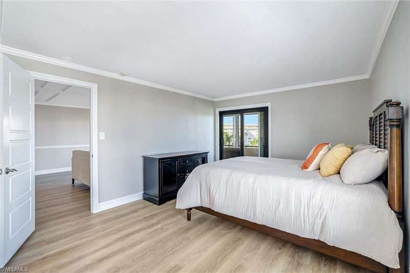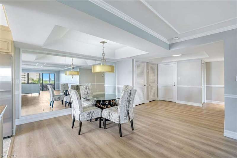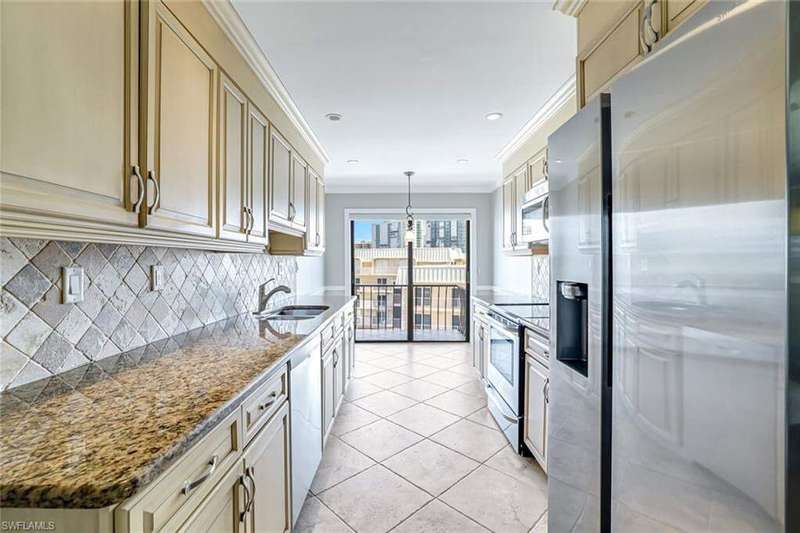 Welcome to your freshly remodeled 3-bedroom, 3-bathroom end-unit condo in the highly desirable Moorings community! Located on the 5th floor of the recently renovated Madrid Club, this residence offers an open, light-filled layout with expansive windows that capture the coastal surroundings. The Madrid Club showcases a fresh, modern redesign and outstanding amenities, including a Bayfront pool, fitness center, social room, card room, outdoor kitchen and party area, kayak racks, and a launching dock with boat slips available for lease. Onsite property management adds peace of mind. Just steps from Naples' award-winning beaches and within walking distance to the upscale dining and shopping of Venetian Village, this home also includes a garage parking space and air-conditioned storage. Optional membership to the exclusive Moorings private beach park is available. This move-in-ready condo is the perfect opportunity to secure your piece of the Naples lifestyle in time for season!