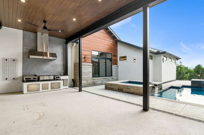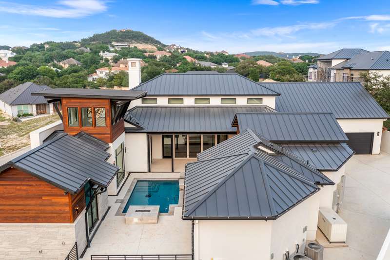 Welcome to the Dominion Heights Estate, an architectural masterpiece, located in the heart of The Dominion. This extraordinary property, covering 1/3 of an acre, is a showcase of unique design, featuring a stunning exterior of Ipe wood and leuders limestone that sets it apart as a true work of art. Stunning Contemporary Luxury new construction by Gustavo Arredondo and Dwell Dominion. Set high above Dominion Heights with majestic views of the country club and Hill Country. Amazing attention to design, with floor-to-ceiling windows throughout bringing the outdoors in. A sophisticated color palette, 26-foot ceilings and top-of-the-line finishes, this property is one of a kind. This residence boasts a thoughtfully designed floor plan, providing a seamless blend of functionality and style. From inviting interiors to charming outdoor spaces, the home offers a variety of gathering areas suitable for everyday living and hosting memorable events. Upon entering, you are greeted by a forty-foot entry gallery, views of the pool and wide-plank oak flooring throughout that add to the grandeur and appeal. Large windows look out onto the patio, complete with a firepit, built-in grill space, and pool with a spa. The gourmet kitchen is a true masterpiece, featuring quartz countertops and a ten foot-wide island. Functionality meets luxury with top-of-the-line appliances, including a built-in refrigerator, a six-burner gas range, and a three ovens. For the organization enthusiast, the 78-square foot pantry, adorned with custom cabinetry and areas for cleverly concealing appliances-a dream setup for both chefs and entertainers alike. A 157-square foot, air conditioned wine vault will impress the wine collector. The gracious primary retreat, located away from the rest of the home, offers ample natural light and privacy. Dual vanities and water closets, soaking tub, and carefully selected floors and finishes add to the hotel-like feel of the primary suite. The custom primary closet is both functional and spacious with built-in drawers and multiple double-tier garment racks. The primary wing also has a grand office with built-in cabinets and desk area that overlooks the backyard. Do you need a concealed room for a safe? We have a dedicated jeweler's office, separate from the main study. In its own wing, a capacious game room steals the spotlight. Complete with built-in storage, it serves as an extraordinary entertainment hub-ideal for lively game day gatherings or intimate evenings in. Notably, the game room offers a unique touch with direct access to the patio and pool. Complementing the home are three secondary bedrooms, each featuring ensuite bathrooms and walk-in closets finished in custom cabinets. A mud room with custom cabinetry and built-ins, and a large laundry room with sink, hanging space and unmatched storage, all off which are off the entrance to the 4-plus car garage. The garage has double-height ceilings which allow for a car lift increasing the parking to 6 vehicles. EV charging capabilities are installed as well as a whole-house generator. Adding to the intrigue is a hidden gem-a 495-foot room above the garage. The versatility of this space opens up a world of possibilities, whether it be transformed into additional storage, a meditation room, an office, a music room, a glam room, or any other creative pursuit you envision. Adding a bathroom allows for a nanny suite. An exceedingly "smart" home, have piece-of-mind with the ability to control the home's functions with your phone. Security is paramount with 14 external and garage based high-definition cameras with local and cloud storage. The backyard has an alfresco entertaining space with a fire pit where you can enjoy the beauty and solitude of the Texas stars. The grassy backyard is softly sloped and thoughtfully terraced with custom landscaping to provide flat lawn areas that are perfect for play. Eligible buyers can take advantage of an exclusive 3-2-1 rate buy-down at 4%. - 10/30/2025 3:15:55 AM