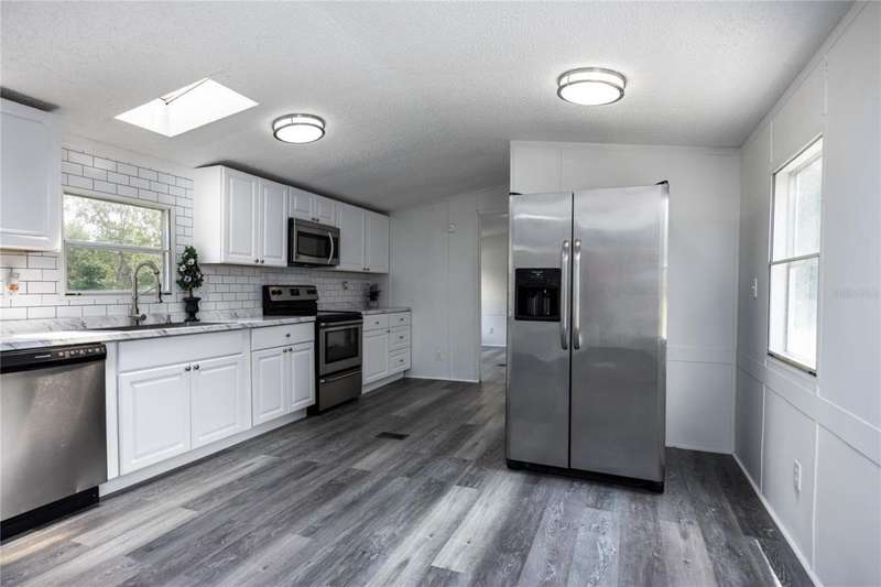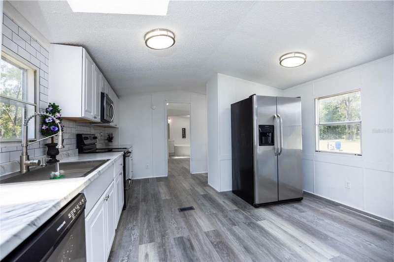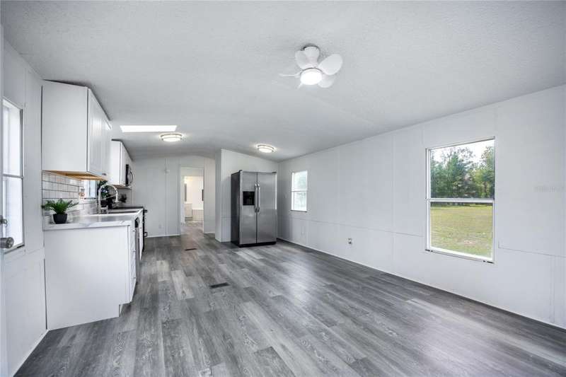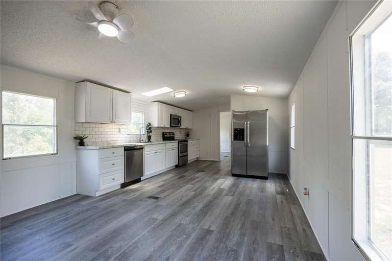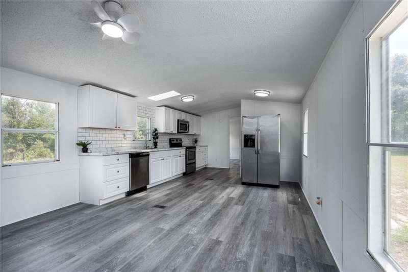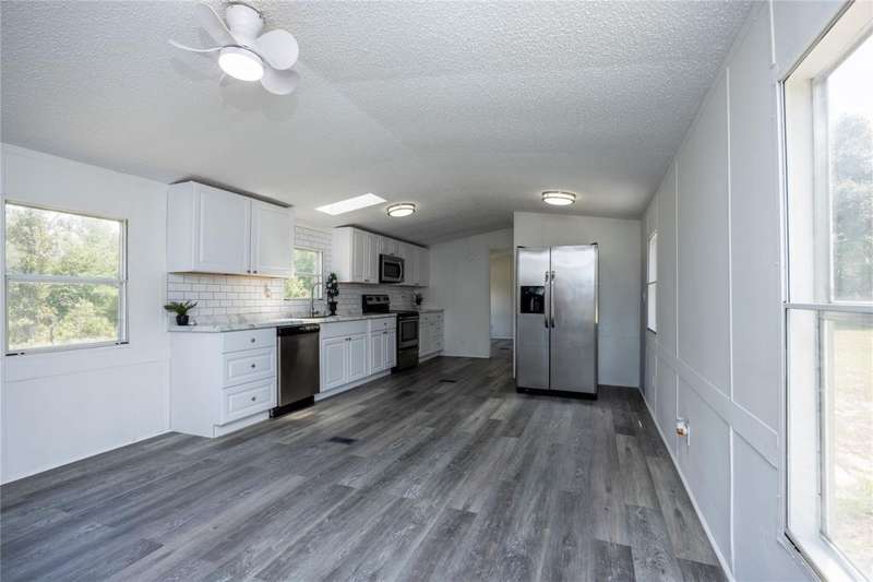 Welcome to this 2 bedroom 2 bathroom fully remodeled home situated on 1.35 acres. The living room, kitchen, and bedrooms feature beautiful vinyl wood flooring throughout. The spacious kitchen offers ample pantry space and a dining area. This home has a split floor plan, providing an open layout which is a great use of space and great for entertaining and relaxing. Numerous updates have been made in the last few years, with one of the most significant additions being a new metal roof that has been installed on the house. Updates include new flooring, fresh interior paint, and stainless steel appliances. The large oversized yard allows for additional outbuildings and plenty of room for recreational activities. Fully fenced in yard with fresh spring water that comes straight from the ground and you will never have a water bill! Water is plumbed throughout the yard which is perfect for animals and a garden. The home is conveniently located near Gainesville but with Levy County taxes! No HOA and is on Central Florida Electric which is very affordable. Great first home and move-in ready. Schedule an appointment to view it today!