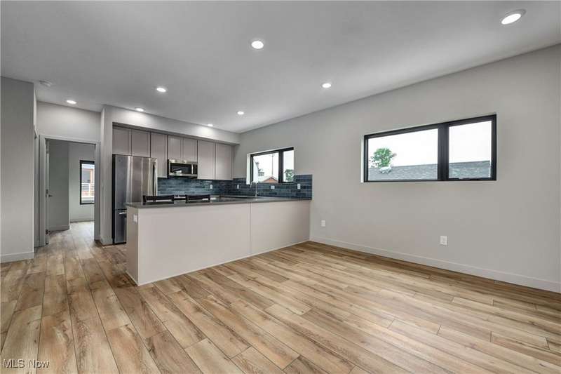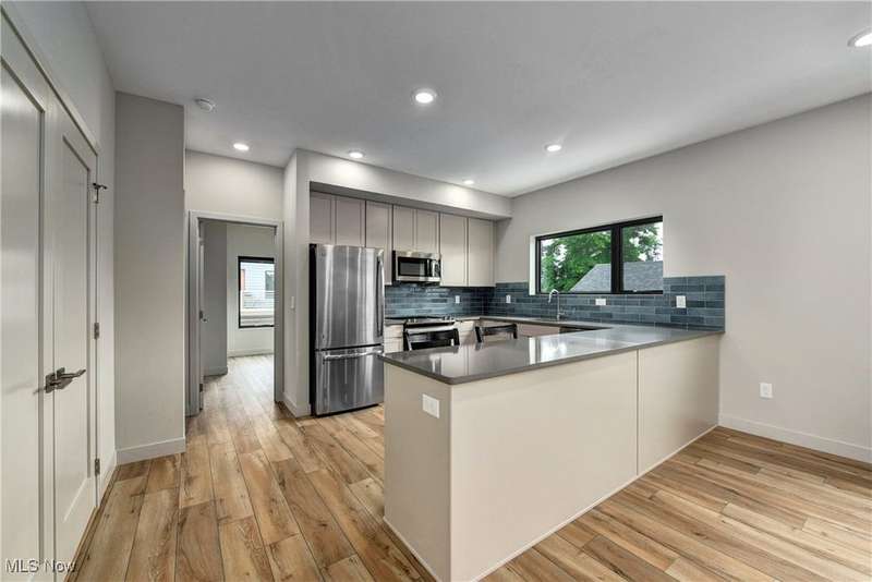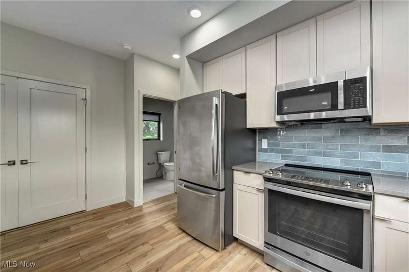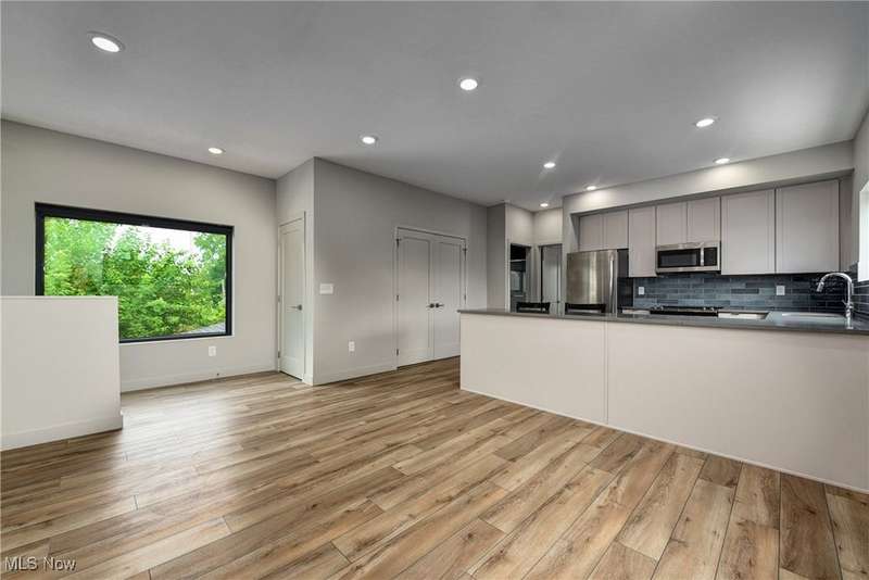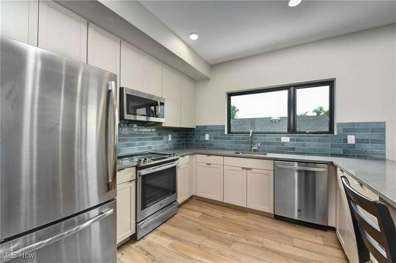 Incredible opportunity to live in a new build carriage house in an ideal central Duck Island location! Just a short distance from incredible amenities like the Velvet Tango Room, Forest City Brewery and the West Side Market, this striking home has all the upgraded finishes you want in a perfect private location. The ground floor is a good sized one car garage. Then up the stairs to the open floor plan living room/ kitchen with sizable breakfast bar with quartz counters, attractive custom tile backsplash and stainless appliances throughout. Then on to the bedroom with more attractive finishes and loads of natural light. Finally, appreciate the convenience of a full laundry closet in unit. The outside space includes a private back patio. All utilities except internet are included in monthly rent.
