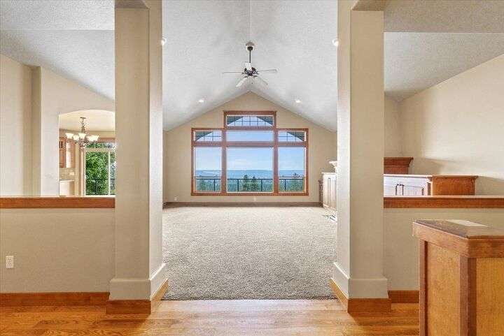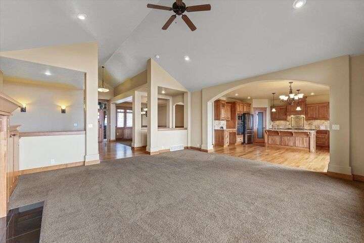 Welcome to 10321 N Navaho, perched on the desirable 5 Mile Bluff where luxury meets comfort. The chef’s kitchen is ideal for entertaining with high-end granite counters, custom cherry cabinetry, a massive island with sink and eating bar, and top-tier stainless appliances including double ovens, gas grill-top stove, and a brand-new French door fridge. The main floor primary ensuite is a retreat with breathtaking views, spa-like bath featuring double sinks, oversized tiled shower, soaking tub, and a walk-in closet any fashionista will love. Floor-to-ceiling windows and soaring ceilings showcase 180-degree panoramas and unforgettable sunsets, while a cozy gas fireplace adds warmth to the great room. Three ensuite bedrooms offer comfort and privacy for all. Outdoor living includes a welcoming covered front porch, composite deck perfect for sunset dining, and shaded back patio. Updates in 2025 include refinished hardwoods, new LVP flooring, landscaping and fresh professional exterior paint.