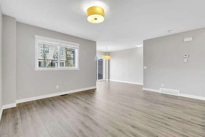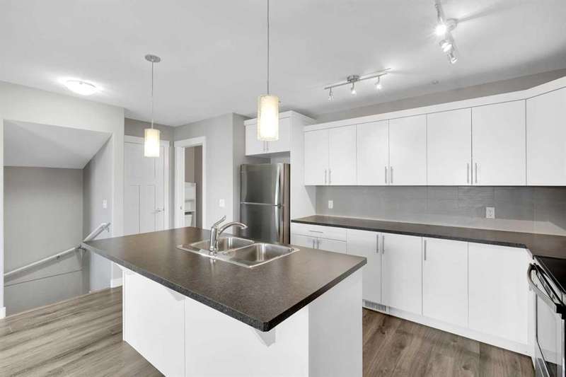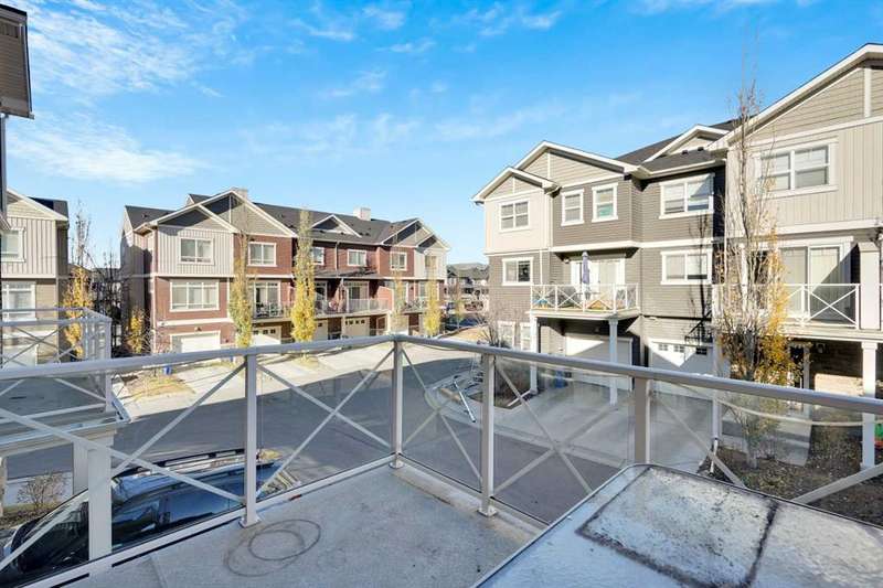 Beautifully Maintained Multi-Level Townhouse in Skyview Ranch Grove This well-kept home features quality finishes throughout, including modern cabinets, flooring, and countertops. The spacious layout offers high ceilings, 2 bedrooms, and 2 bathrooms, providing a comfortable and functional living space. Lightly lived in, the property maintains the fresh feel of a new build. - Ideally located near parks, K-9 schools (Apostles of Jesus and Prairie Sky School), and major amenities such as CrossIron Mills and the airport. The home is equipped with a Heat Recovery Ventilator (HRV) for year-round fresh air and improved energy efficiency. - A generously sized, well-ventilated kitchen makes meal preparation a pleasure, with ample space for daily cooking and entertaining.
