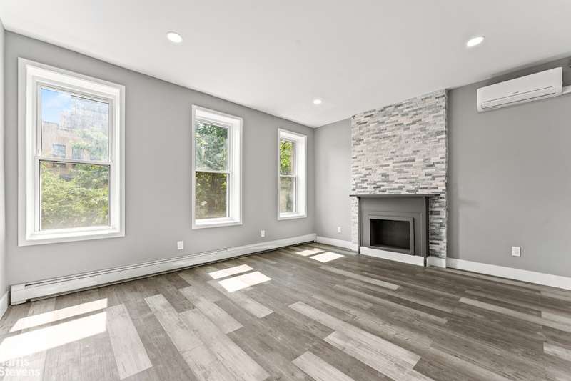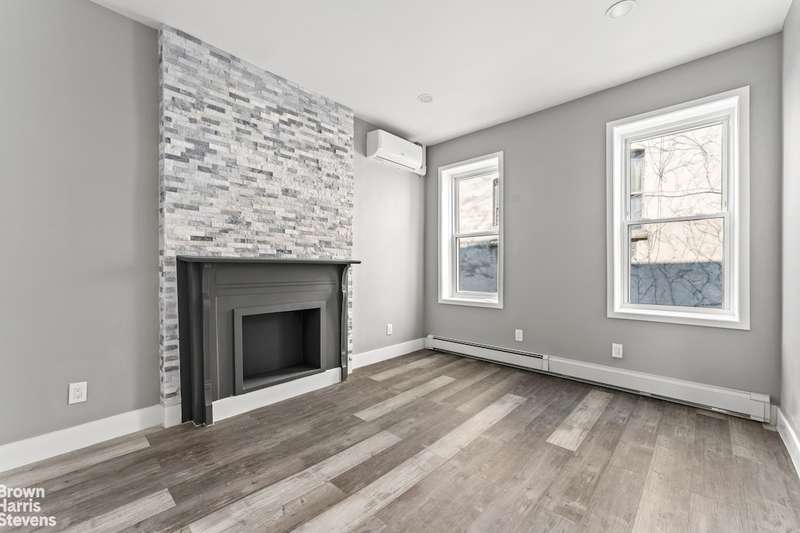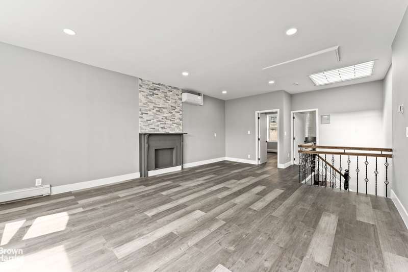 - Mini-split systems for personalized climate control Five decorative fireplaces with classic moldings Soaring 10-foot ceilings and elegant pre-war details throughout Brand new kitchen with stainless steel appliances, center island, and dedicated dining area Second level with spacious Main bedroom and second bedroom, both with large closets, and a modern bathroom with tub/shower combination Artistic skylight enhancing the staircase with natural light