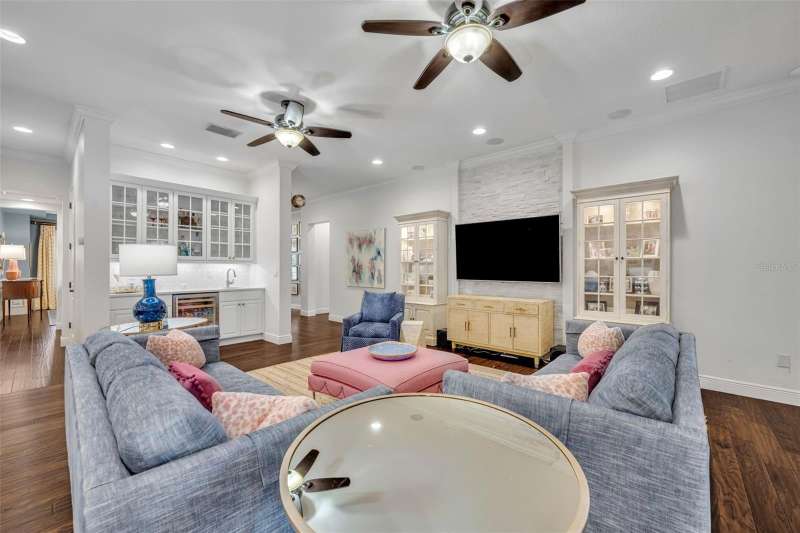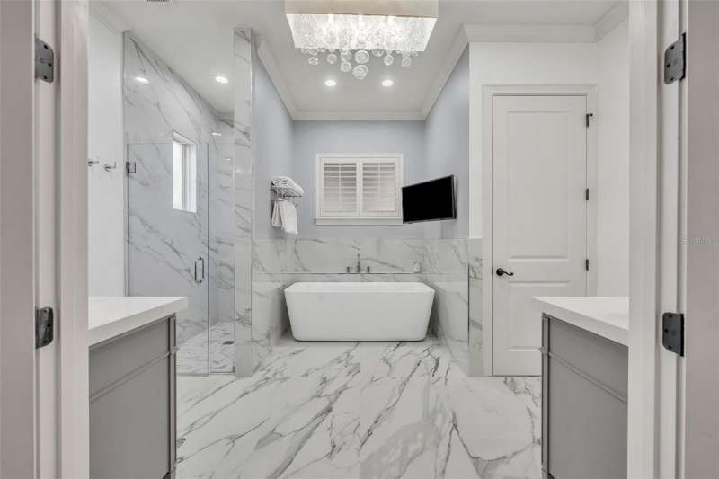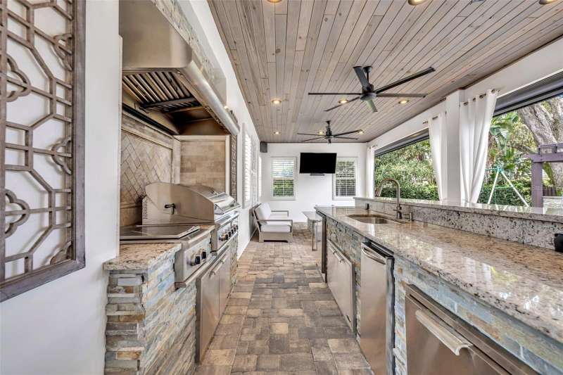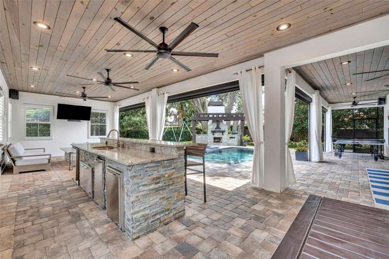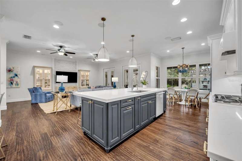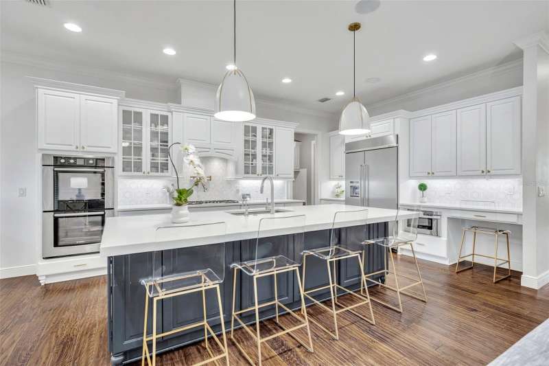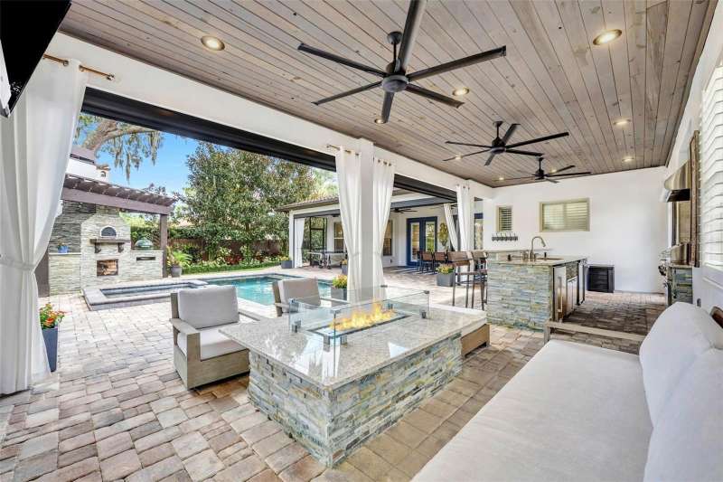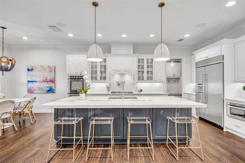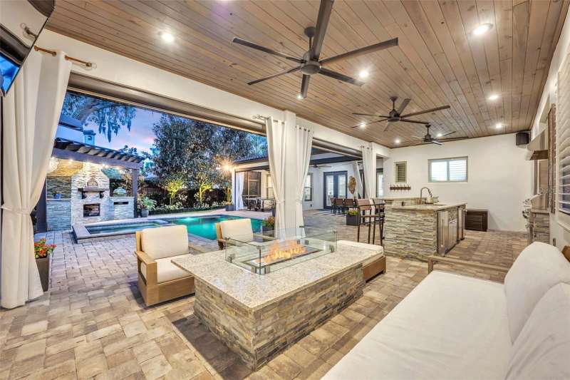 This stunning LunDev-built pool home has been meticulously maintained and thoughtfully updated, blending timeless craftsmanship with modern style. The ideal floorplan features a first-floor primary suite, a private office, and an open kitchen and family room that flow effortlessly to the home’s exceptional outdoor living space. Outside, the spacious backyard is a private retreat complete with an oversized covered patio, gas firepit, and a fully equipped summer kitchen with a pizza oven, all surrounding a sparkling pool and heated spa. In 2022, the kitchen received a major renovation, showcasing a new island, updated countertops and backsplash, fresh fixtures and cabinet hardware, and elegant lighting that elevate the space. The primary bath renovation mirrors the same level of quality, with new custom vanities topped with quartz countertops, all-new tile, a glass-enclosed shower, a relaxing soaking tub, and classic lighting and mirrors. Additional improvements include a new roof (2021), newer hardwood floors throughout the 2nd floor, updated brick paver driveway, newer pool equipment, and fresh interior and exterior paint, each reflecting consistent care and attention to detail. Designed for both everyday comfort and effortless entertaining, this home is truly move-in ready and radiates pride of ownership inside and out.