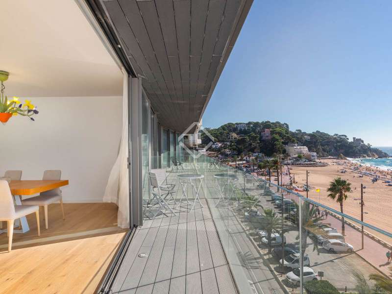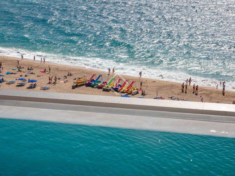 Lucas Fox presents this exclusive apartment in Lloret de Mar on the seafront. It has 127 m² built and a spectacular terrace with frontal views of the Mediterranean. The apartment is located in the best area of the city, surrounded by all the amenities, shops, restaurants and leisure options that Lloret de Mar offers. This recently built apartment has been designed with high-end materials and has all the amenities to enjoy maximum comfort. The property includes an underground parking space. The property features an elegant living-dining room and a modern kitchen open to the living room that is equipped with state-of-the-art appliances . From the living room or the kitchen, there is direct access to the large terrace, where you can enjoy the impressive sea views. In addition to the bright living area, the property has a spacious main bedroom with its own private bathroom, which features a modern shower and built-in wardrobes that offer generous storage space. There are also two other double bedrooms, also equipped with built-in wardrobes, which share an elegant full bathroom with a bathtub. Finally, there is a practical laundry area or storage room area. The apartment is distinguished by its excellent layout and functionality, as additional built-in wardrobes have also been integrated into the corridor to the bedrooms, providing even more storage capacity. Among the exclusive communal areas, there is an impressive infinity pool with several chill-out areas , ideal for enjoying the Mediterranean climate. In addition, it has a concierge service, a direct lift from the underground car park and highly energy-efficient systems, such as underfloor heating, air conditioning and an innovative aerothermics system. Please contact for more information.