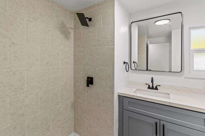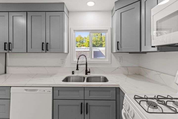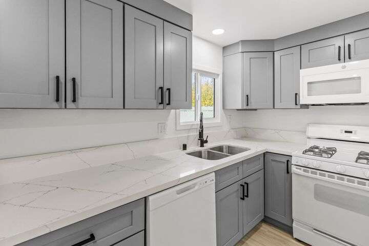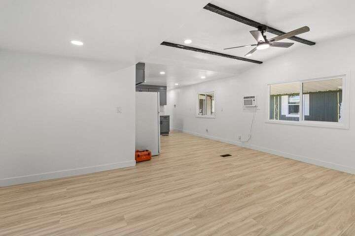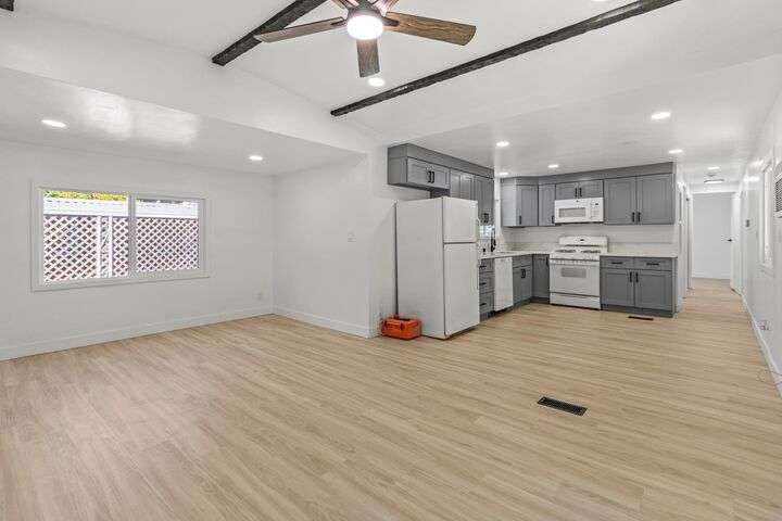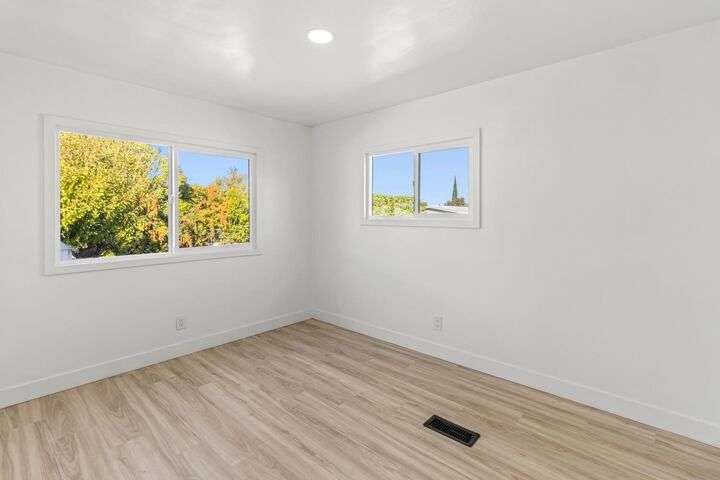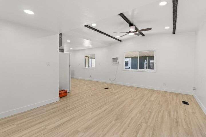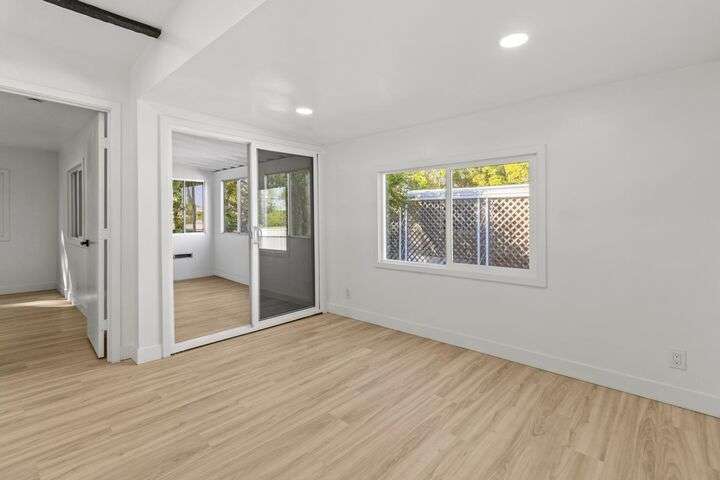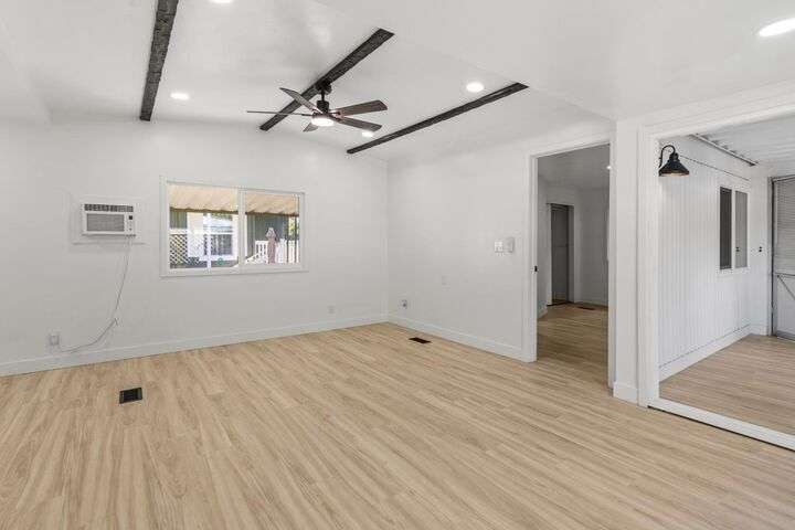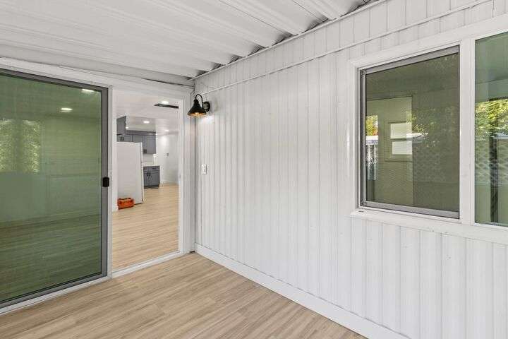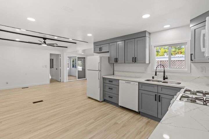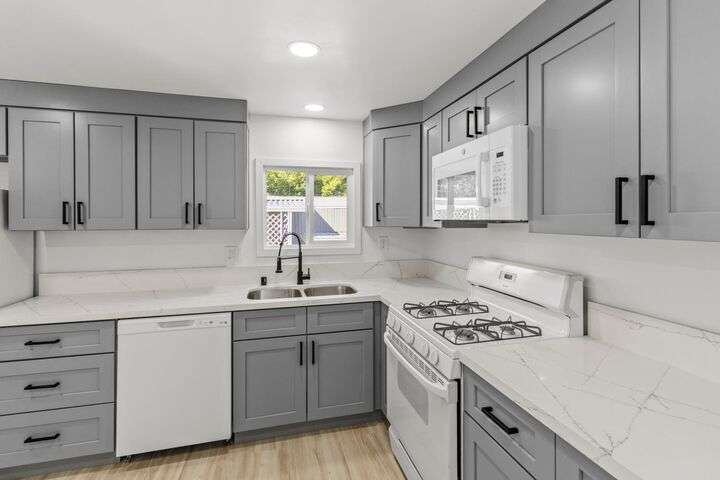 Welcome to Oak Grove Estates, a warm and welcoming 55+ community where comfort meets convenience. This beautifully remodeled 2 bed, 2 bath home offers fresh interior/exterior paint, new stylish vinyl plank flooring and baseboards with new dual pane windows and casings in living room, kitchen and bedrooms. LED lighting and textured walls surround. The stunning new kitchen includes new cabinets, quartz countertops, stainless steel undermount sink, gas range, dishwasher, built in microwave and newer refrigerator. Spacious, expanded living room with ceiling fan and access to enclosed front porch. The primary suite offers a stylish step in shower with new pedestal sink, toilet and all new hardware. The secondary bath showcases a new tiled shower, cabinet, quarts countertop/sink, toilet and hardware. Additional highlights: Central heat & air, indoor laundry, storage shed, covered carport, enclosed exterior porch on both sides of home. Private court with tree lined view across the street. Enjoy the clubhouse, pool & nearby shopping, parks & freeway access. Move in ready! Seller will consider buyer financing assistance if needed.